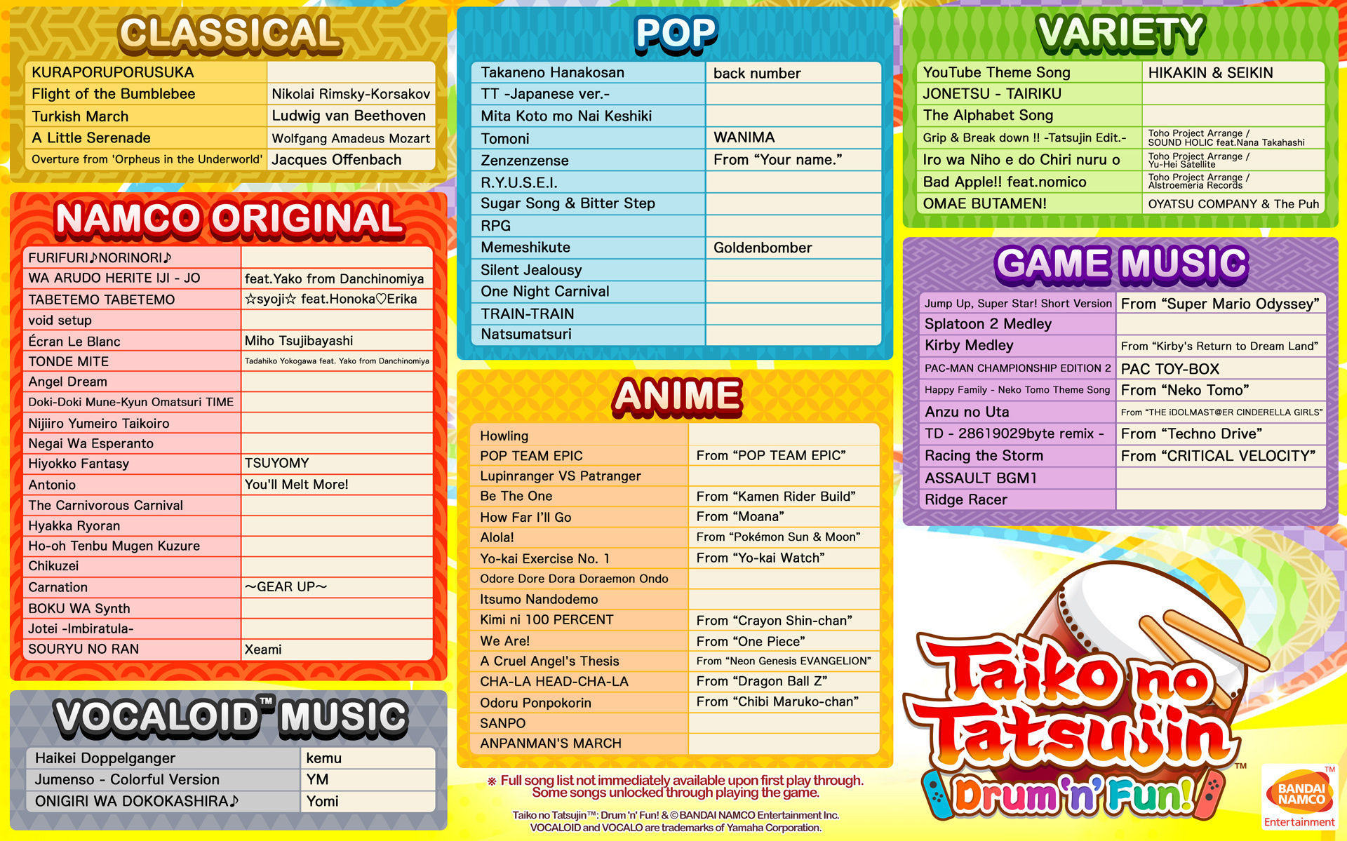 La selección incluye algunos temazos tan icónicos como el "Cha-La Head Cha-La" de Dragon Ball Z, "A Cruel Angel's Thesis" de Neon Genesis Evangelion, "We Are!" de One Piece, "Jump Up, Super Star!" de Super Mario Odyssey, un popurrí de Kirby, "Zenzenzense" de la película Your name o incluso canciones de música clásica como la "Marcha Turca" de Beethoven. Ojo aquí, ya que hasta canciones como "How Far I'll Go" de Vaiana (Moana en su versión original) nos llegan en completo japonés.