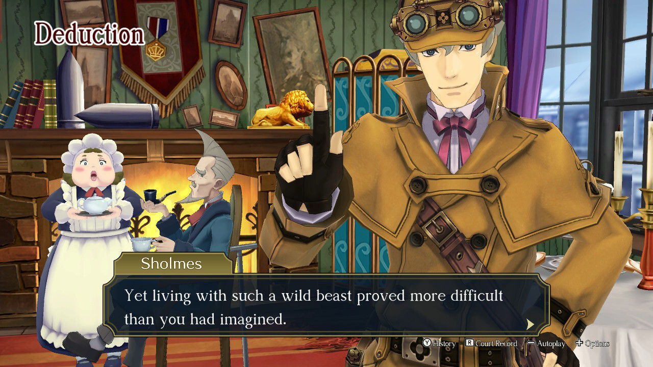 Siguen siendo las partes menos buenas, aunque los casos son tan interesantes que nunca llegan a hacerse aburridas. De hecho, ahora hay momentos en los que tendremos que colaborar con Herlock Sholmes (sí, es la manera que ha encontrado Capcom para introducir a Sherlock Holmes evitando líos legales) para resolver algunos misterios a base de realizar deducciones, lo que ayuda a aportar variedad mientras seguimos sus razonamientos y movemos la cámara alrededor de ciertos lugares para señalar aquellas cosas que nos permitan resolver los enigmas que se nos planteen.