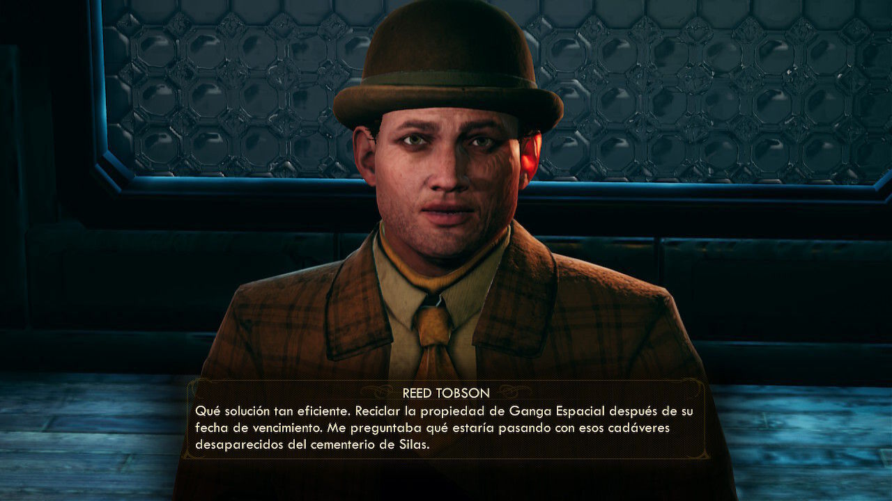 Pero antes de entrar en detalles sobre los temas puramente técnicos, ¿qué es The Outer Worlds? Muchos lo han tildado del sucesor espiritual de Fallout New Vegas, uno de los juegos de rol más alabados de la pasada generación. La afirmación es cierta, pero solo en parte y dependiendo qué tipo de jugador seas. La última obra de los magos del RPG, Obsidian (Pillars of Eternity, Tyranny), hace muchas cosas muy bien y fijándose directamente en el juego publicado por Bethesda. Los jugadores encarnan a un colono que viajaba hacia otro Sistema Solar antes de que su base espacial fuera abandonada a la deriva: las corporaciones que dominan este nuevo mundo no lo consideraban rentable. A nuestro rescate llega el científico loco Phineas Wells, quien nos encomienda la misión de conseguir una suerte de fármaco para que también pueda despertar a los otros colonos atrapados en la nave durante 70 años. Pero como suele ocurrir en Fallout, la historia principal, sin ser para nada mala, es realmente secundaria en el total de las cosas.