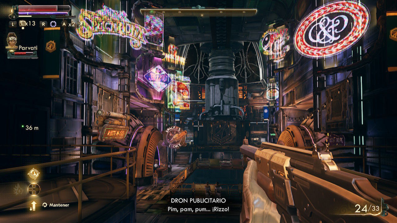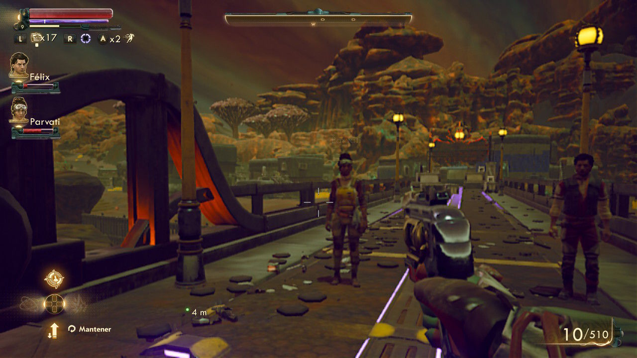 Así, The Outer Worlds es en Switch el mismo juego que en consolas de sobremesa y ordenadores. Podéis esperar un guion igual de genial. Os encontraréis un sistema de combate que, sin ser revolucionario, ofrece múltiples chispas de originalidad con las alocadas armas científicas. Veréis que el cómo configuráis los talentos de vuestro personaje variará mucho cómo se afronta un diálogo o una incursión a un edificio repleto de robots desquiciados. Aprenderéis que vuestro propio posicionamiento ideológico influirá en las tramas que se os cuentan. Pero el apartado visual que rodea todo este conjunto tiene en la consola híbrida sus más y sus menos.