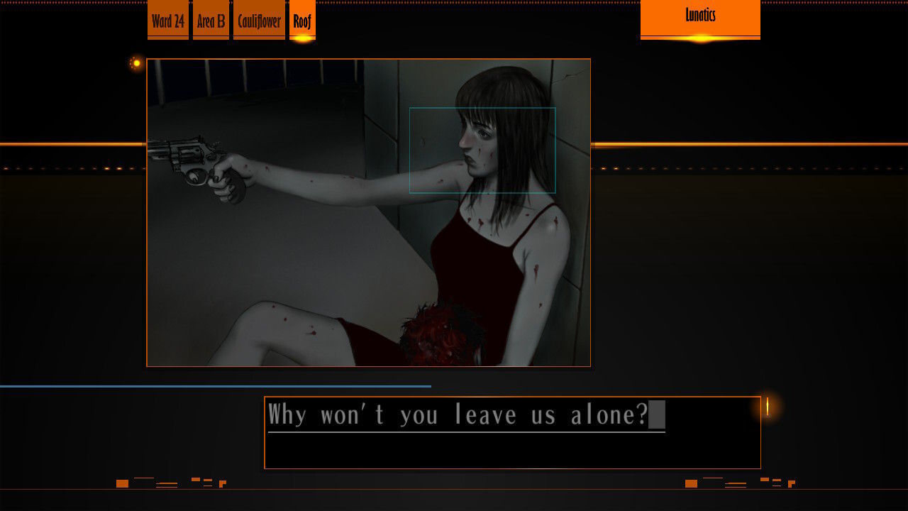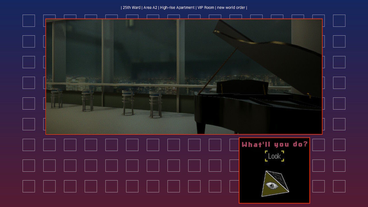 En este tuvieron que hacer desde cero toda la interfaz, buscando encajar con The Silver Case en un similar formato de viñetas panorámico, en lugar del aspecto 1:1 que tenía en móviles. Aquí en los entornos 3D notamos un poligonaje mucho más suave y agradable, a pesar de que tampoco es ningún portento gráfico, pero sí que justifica mejor ese estilo low poly. Los comandos de novela visual se han refinado también, siendo mucho más intuitiva la forma de seleccionar los caminos —mediante piezas geométricas en el extremo de la pantalla al que queramos acceder— e incorporando figuras poliédricas para las acciones: un tetraedro para las opciones de hablar, mirar y guardar o un dado de 10 caras para introducir combinaciones numéricas, algo que ocurría a menudo para aprovechar las teclas del móvil.