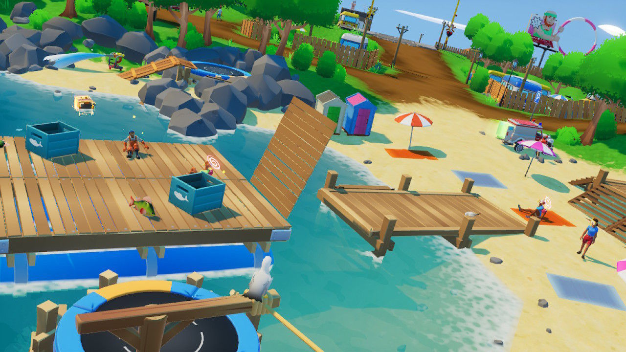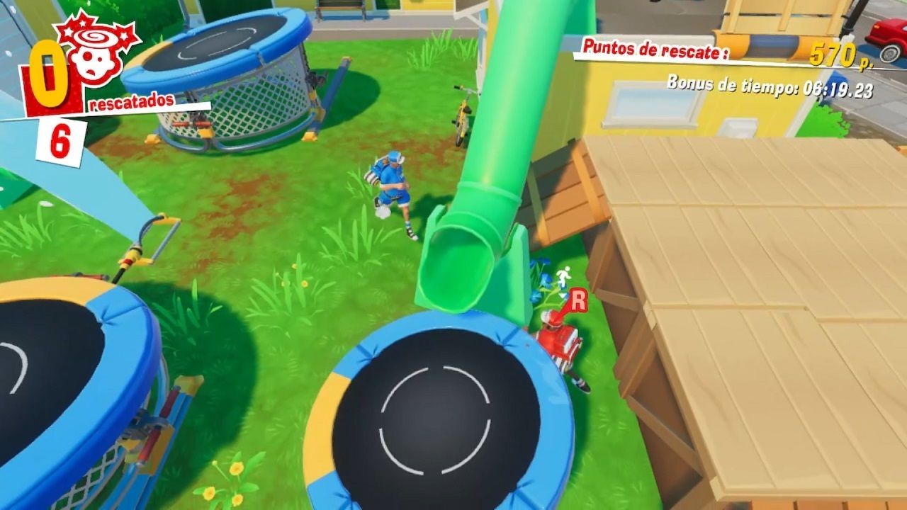 De igual forma, también debemos demostrar nuestra habilidad con el mando a la hora de sortear trampas como sierras mecánicas, chorros de agua, troncos o bolas de demolición entre otras muchas cosas. Y, para colmo, también es posible interactuar con multitud de elementos que se encuentran en los escenarios, desde camas elásticas que nos permiten alcanzar zonas elevadas de los fondos a agarrarnos a tirolinas para ir a parar fácilmente a ciertos lugares no demasiado accesibles. Una jugabilidad que, insistimos, nos ha parecido tan refrescante como bien plasmada… siempre y cuando juguemos acompañados.