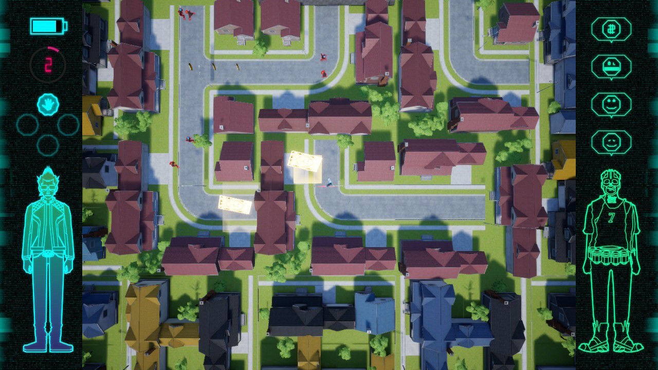 Empezamos en un barrio cuyas calles tenemos que "ordenar" golpeando unos iconos para poder abrirnos camino hasta la mansión, todo ello mientras nos atacan rivales y nos persigue una cabeza gigante. Una vez en ella, toca eliminar a todos los enemigos.