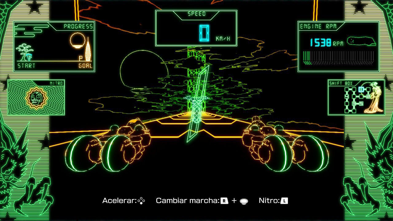 Aquí tenemos carreras de aceleración en moto al más puro estilo Tron. No tenemos que hacer mucho más que cambiar de marcha en el momento justo con un pequeño minijuego y usar el turbo en el momento adecuado. Entre carrera y carrera, toca pelear en un dōjō para conseguir piezas para la moto.