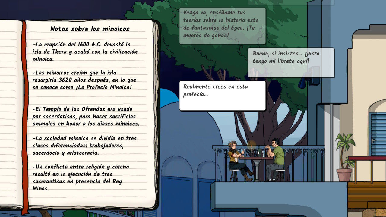 Seguro que conoces el mito de la Atlántida pero quizás la civilización minoica, que fue real, te sea más desconocida. Sin entrar en muchos detalles, se supone que su historia pudo inspirar a la leyenda de la Atlántida por sus muchos paralelismos, como la devastadora erupción en la isla Santorini que habría acabado con una de las sociedades más prósperas y avanzadas en la Edad del Bronce. El desastre habría sido uno de los más grandes de los últimos diez mil años y enterró al asentamiento minoico en Akrotiri bajo piedra pómez. Tal y como sucede con muchas historias de aventuras al puro estilo Indiana Jones, esta base real sirve para crear una fantasía con bucle temporal en Treasures of the Aegean.