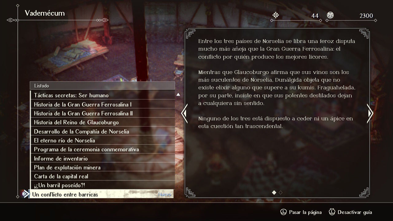 Nosotros no tomamos el papel de ningún rey, no representamos directamente a uno de esos bandos, una decisión necesaria para que el juego pueda ponernos en los conflictos que nos propone. Encarnamos a Serinoa de Wolffort, una de las tres casas vasallas del Reino de Glaucoburgo, quien ha sido emparentado por matrimonio de conveniencia con Frederica, princesa de Fraguahelada, en un movimiento político representativo de esa supuesta paz. Sin embargo, algo ocurre en las Nuevas Minas de Norselia, administradas por las tres naciones, que lo lanza todo por los aires.