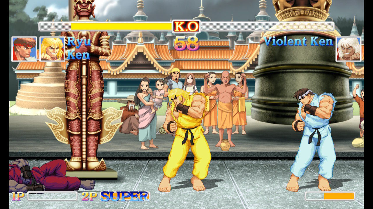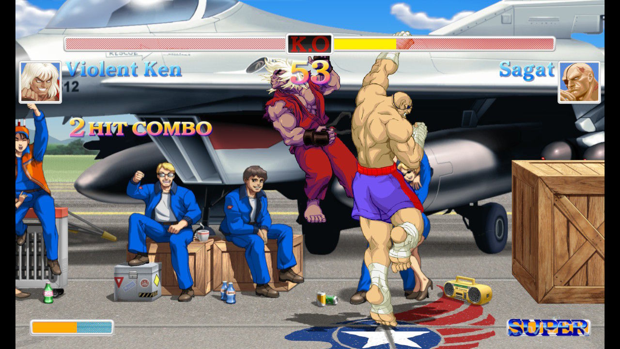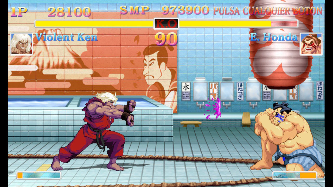 Es decir, que en ellos contamos con los ocho de toda la vida (Ryu, Ken, Zangief, Chun Li, Guile, Dhalsim, E. Honda y Blanka), los cuatro jefes originales (Balrog, Vega, Sagat y M. Bison), los otros cuatro que llegaron con la edición Super (Cammy, Fei Long, T. Hawk y Dee Jay) más el temible Akuma (integrado en la edición Turbo) y los dos personajes inéditos, Evil Ryu y Violent Ken.