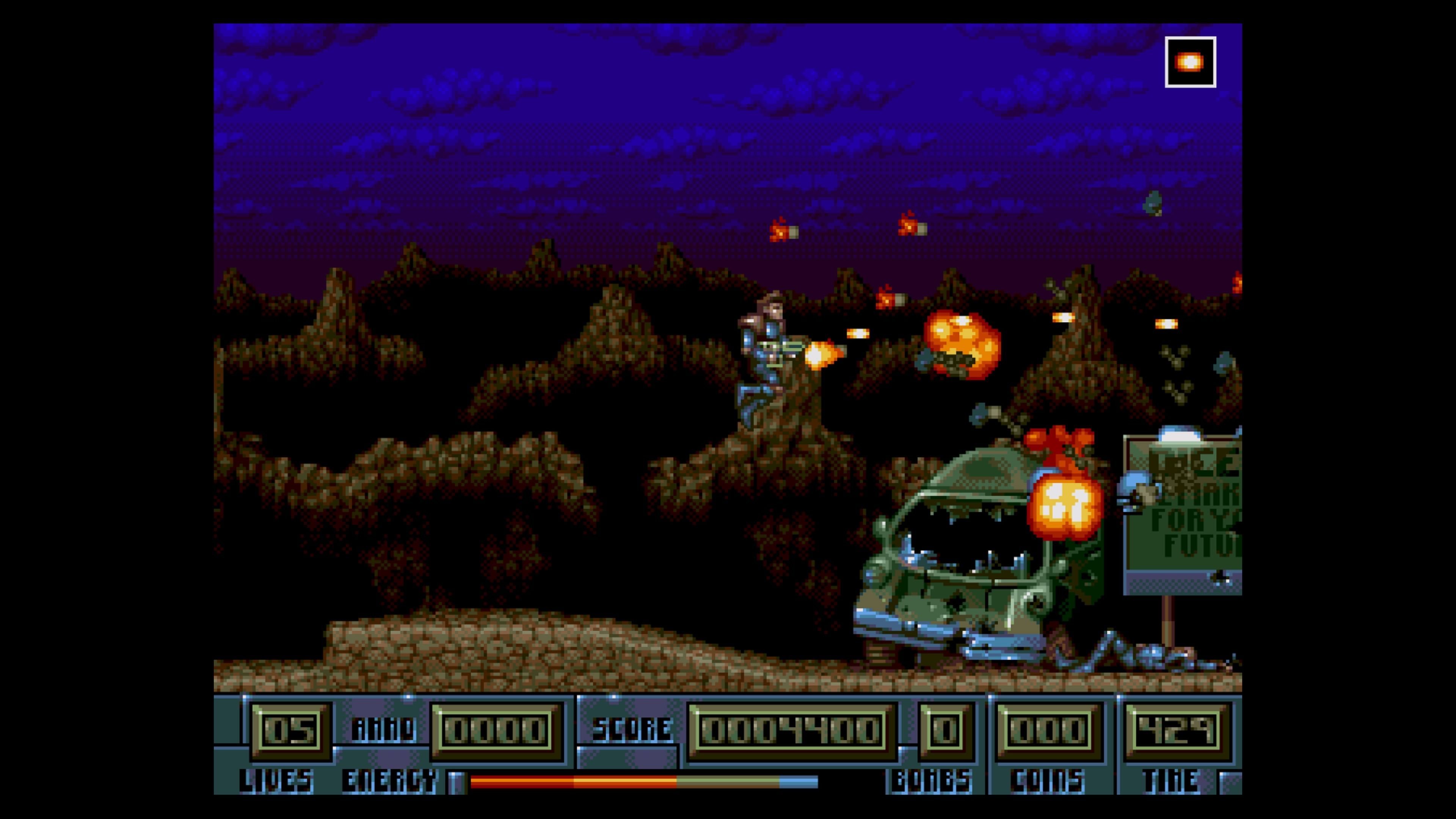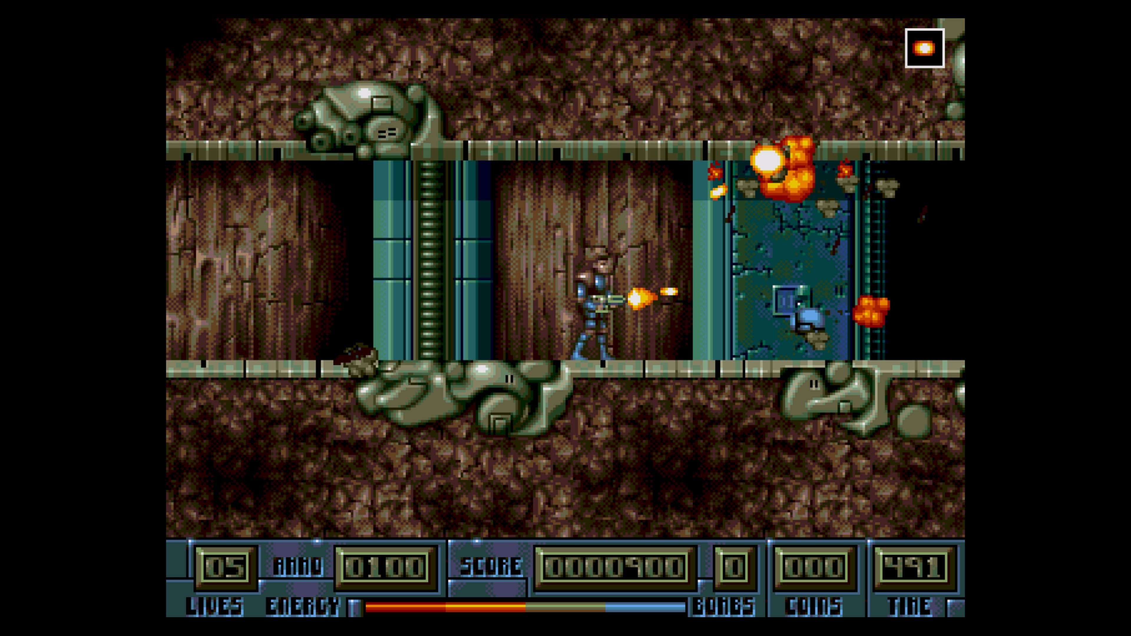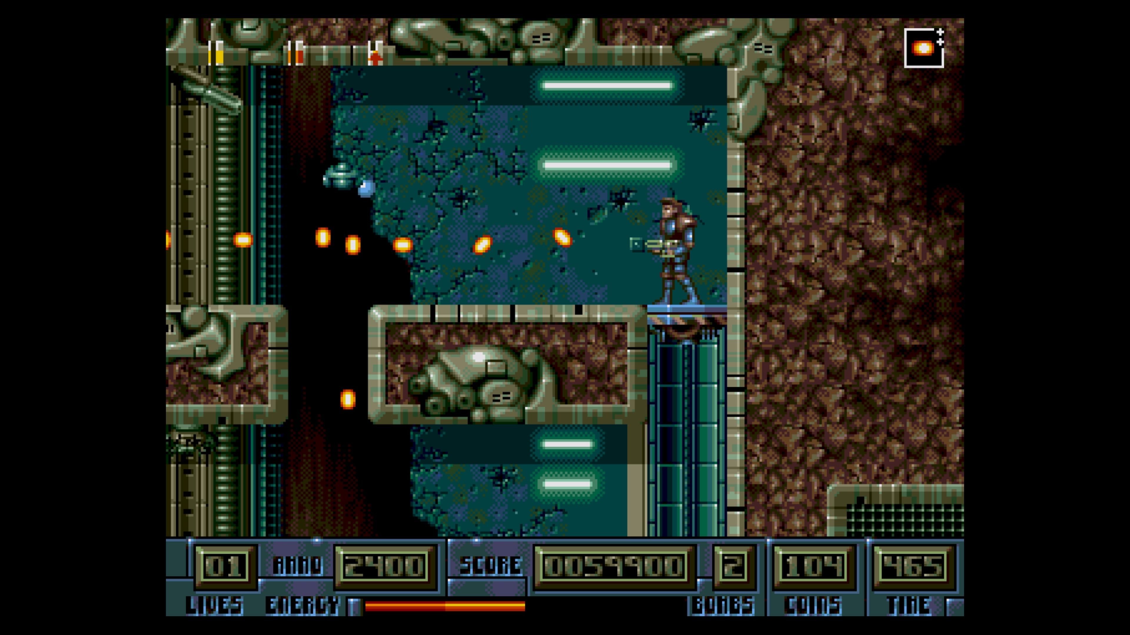 Nos aguardan cinco niveles, una cantidad que puede parecer baja (de hecho, es así) pero que tiene truco. Y es que por un lado el nivel de dificultad que posee esta obra es bastante exigente, sobre todo en los dos niveles finales. Pero además de esto no se tratan de fases lineales en las que simplemente tenemos que avanzar y disparar, dado que también es necesario superar zonas plataformeras, activar interruptores, acceder a terminales, encontrar tarjetas de seguridad e incluso interactuar con algún que otro personaje (muy escasos, también es verdad). No se trata bajo ningún concepto de un título de estilo metroidvania, pero tampoco es el clásico arcade lineal que muchos jugadores experimentaron durante los 80 y los 90: tiene más chicha de lo que parece dentro de su simplicidad. Y además de esto es uno de esos títulos que enganchan desde la primera partida, siendo un gran recurso para descargar adrenalina constantemente. No reinventa nada ni es el mejor juego de su estilo, pero se trata de un exponente muy a tener en cuenta.