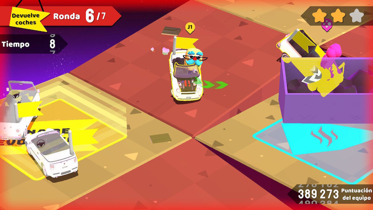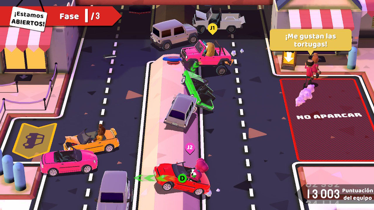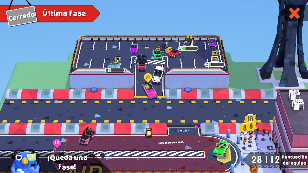 Las partidas de Very Very Valet son un verdadero caos, pero un caos divertido; aquí no vamos a enfadarnos con nuestro compañero de equipo mientras jugamos, como en Overcooked!, probablemente porque se nos escape alguna risotada con el salto absurdo que acaba de dar con un coche a punto de alcanzar su tiempo límite. Las físicas de Very Very Valet dan mucho juego a la experimentación y a las situaciones absurdas, y su diseño de niveles actúa en consonancia ofreciendo escenarios alocados en los que dar rienda suelta a nuestra imaginación.