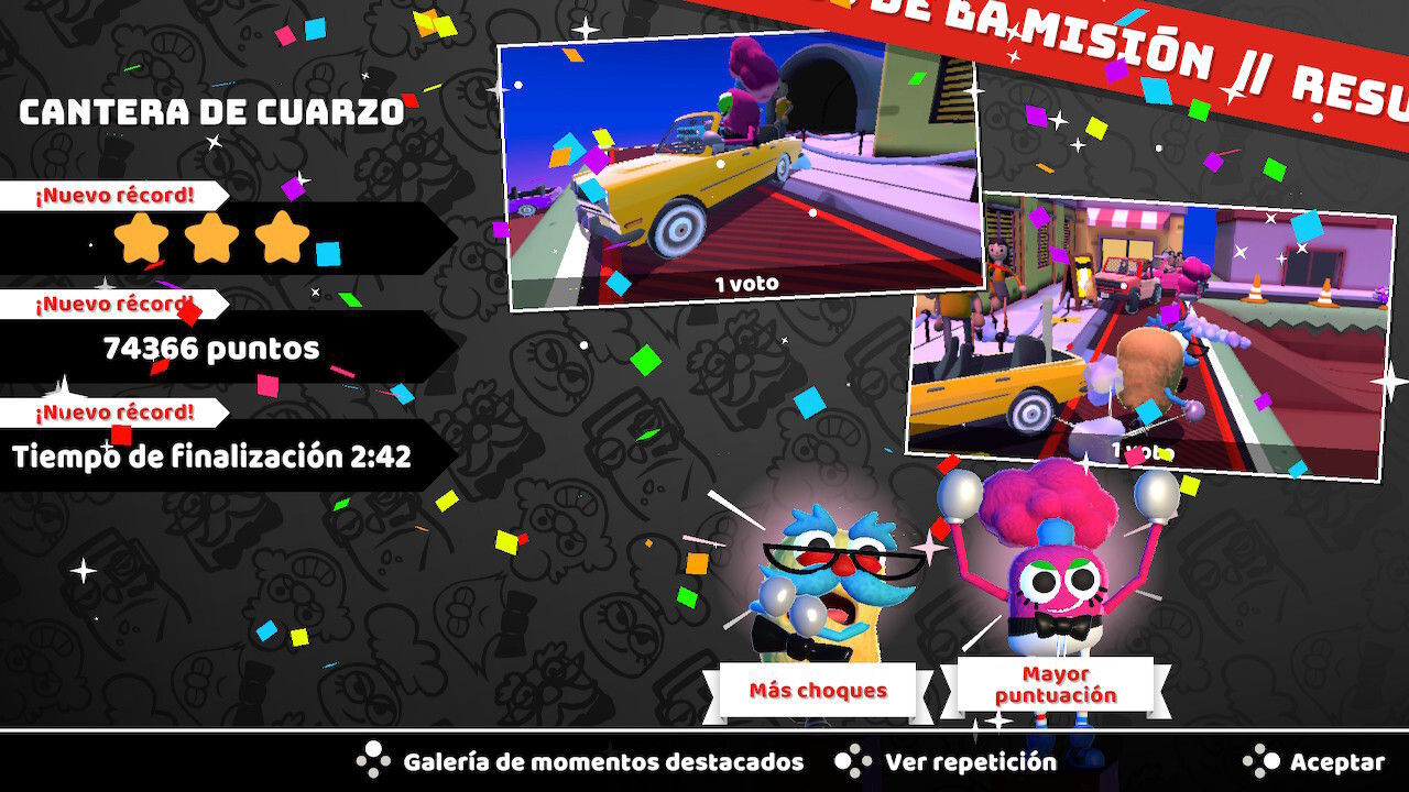Aun así, ponemos el foco de nuevo en lo bien adaptados que está los controles a cualquier persona, una característica de la que saca especial ventaja Nintendo Switch, o al menos el modelo estándar: jugar con un JoyCon extraído, en posición horizontal, es una delicia y apenas se nota que estás utilizando "medio mando". Es uno de esos títulos en los que se aprecia una voluntad específica por parte del estudio para que la experiencia de juego sea cómoda y fluida con esta opción, no como en otros que se siente un simple remapeado de los controles al que incluso le faltan opciones sí presentes en otras configuraciones de mando. Muy buen trabajo en este sentido, sin duda, algo que le da un punto para ser uno de los indispensables en la lista de party games que poner cuando vienen amistades a casa.