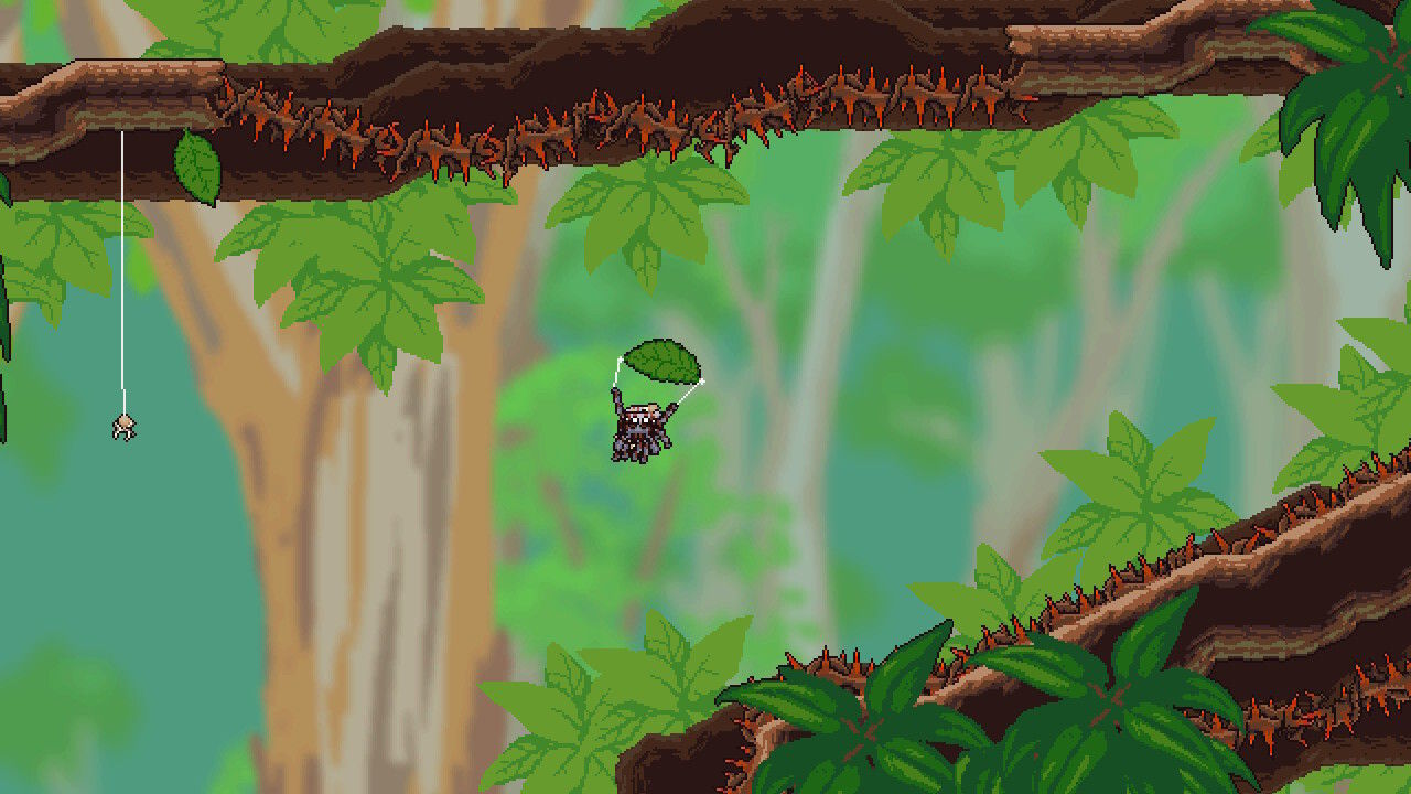 Esta apuesta por la variedad conlleva también cierta pérdida de foco: al no centrarse en un único estilo de juego, Webbed no ahonda en el diseño de niveles particularmente asociado a ninguno de ellos. Los puzles son sorprendentes al principio y te fuerzan a usar el pensamiento lateral para sacar el máximo provecho de la mecánica de crear estructuras con la telaraña, pero a medida que avanzamos vemos que se repiten situaciones y soluciones. Algo similar ocurre con el plataformeo y con el resto de desafíos del juego.