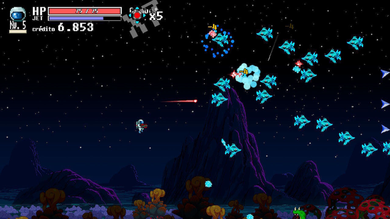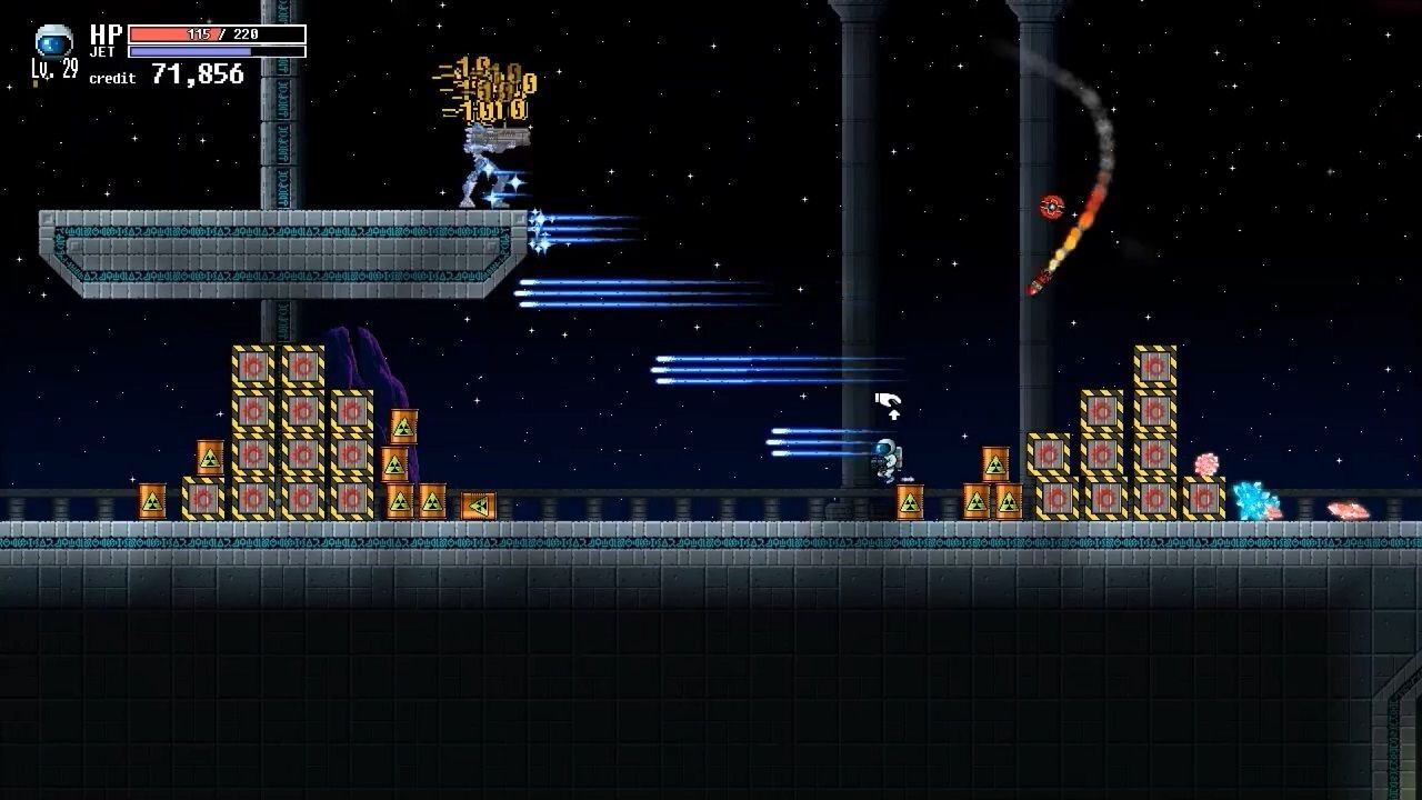 Esta excusa narrativa nos permite disfrutar de una aventura espacial que trata de homenajear a los títulos de ese mismo estilo aparecidos durante la era de las consolas de 8 y 16 bits. El planteamiento del juego es bastante atractivo y combina numerosos elementos como la acción y los disparos en plan shooter con la exploración de amplios escenarios, el plataformeo, toques de RPG y trazas de estilo metroidvania. Una fórmula que no sorprende pero que ha sido bien implementada en líneas generales, dando forma a un juego que resulta bastante atractivo y hasta enganchante a poco que te guste lo que propone.