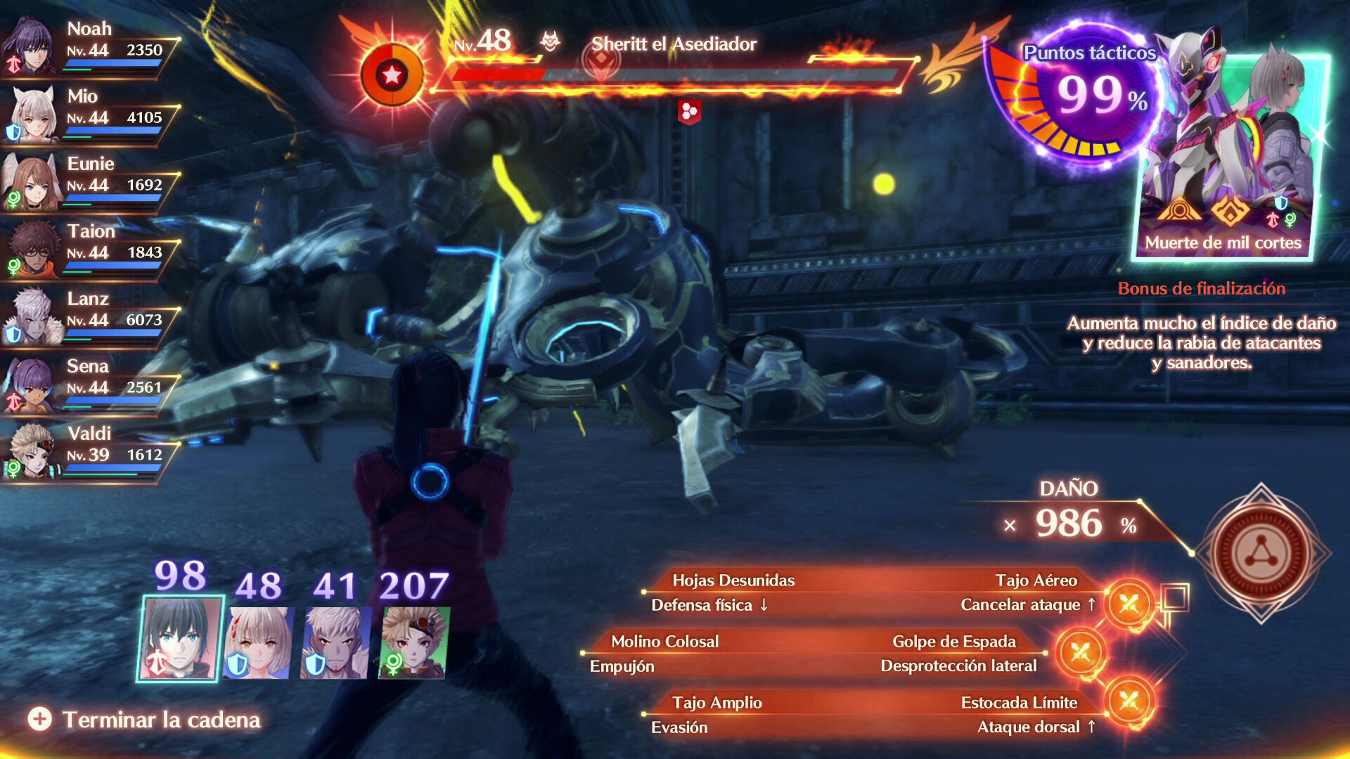 A nivel gráfico, Monolith Soft ha vuelto a exprimir el hardware de Switch hasta sus últimas consecuencias para ofrecernos todo un espectáculo audiovisual. Los escenarios tienen montones de detalles y una distancia de dibujado sorprendente, los modelados tanto de los personajes principales como de los enemigos están muy conseguidos, los efectos son muy vistosos y es capaz de poner infinidad de elementos en pantalla de manera simultánea. Además, la dirección de arte es una maravilla, las cargas son muy breves y las secuencias de vídeo más trabajadas tienen una factura impecable.