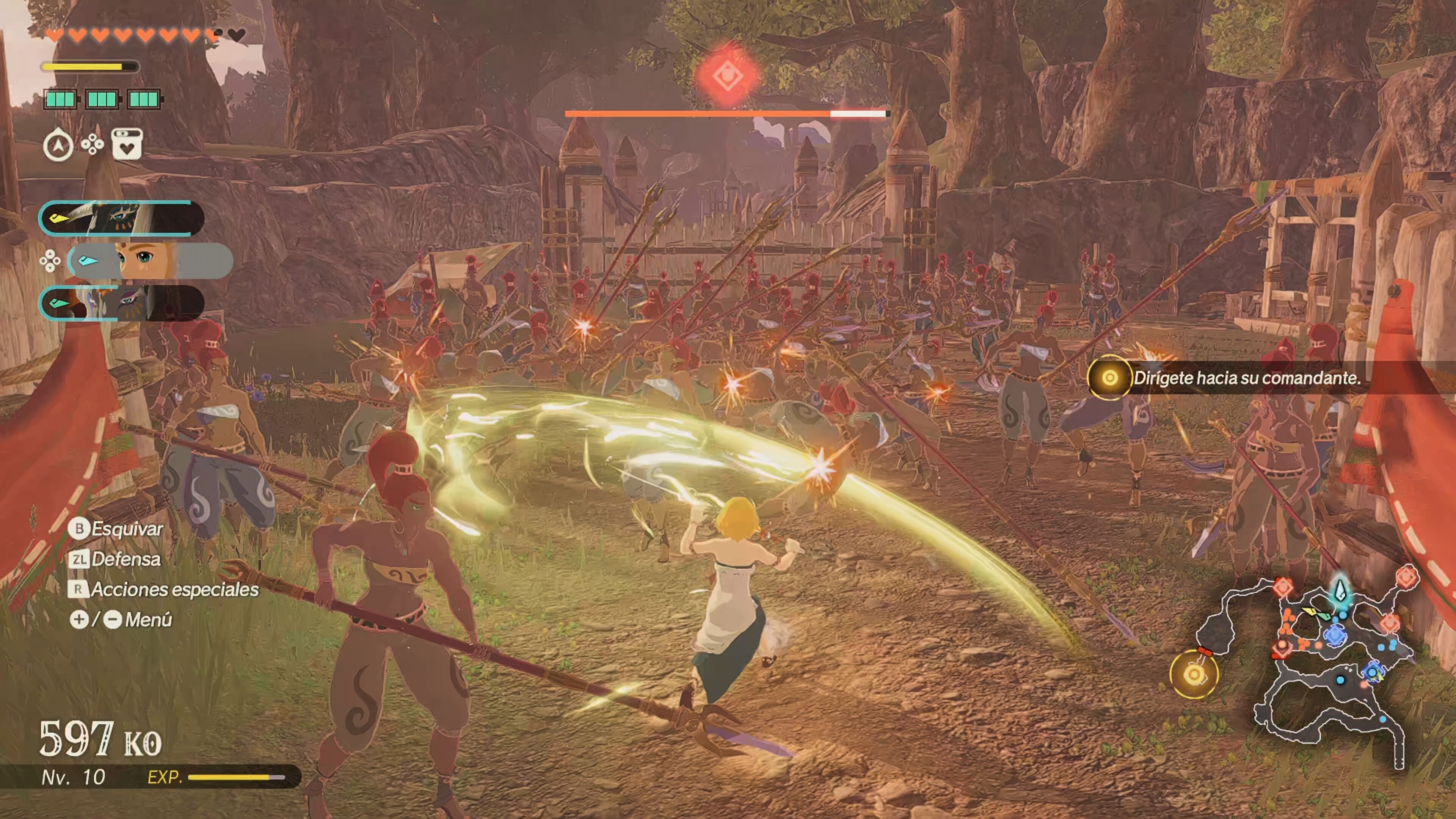 De hecho, hay detalles que os aseguramos que os emocionarán si sois fans de la saga Zelda, con el descubrimiento de personajes absolutamente épicos. Y hablando de protagonistas, son bastantes, con representación de las múltiples razas típicas de esta licencia. Esto ha servido para dotar de aún mayor variedad a la propuesta, siendo posible controlar a varios luchadores y experimentar distintos estilos combativos. La trama se beneficia claramente de ello, con un buen puñado de acontecimientos que ocurren en distintas localizaciones.