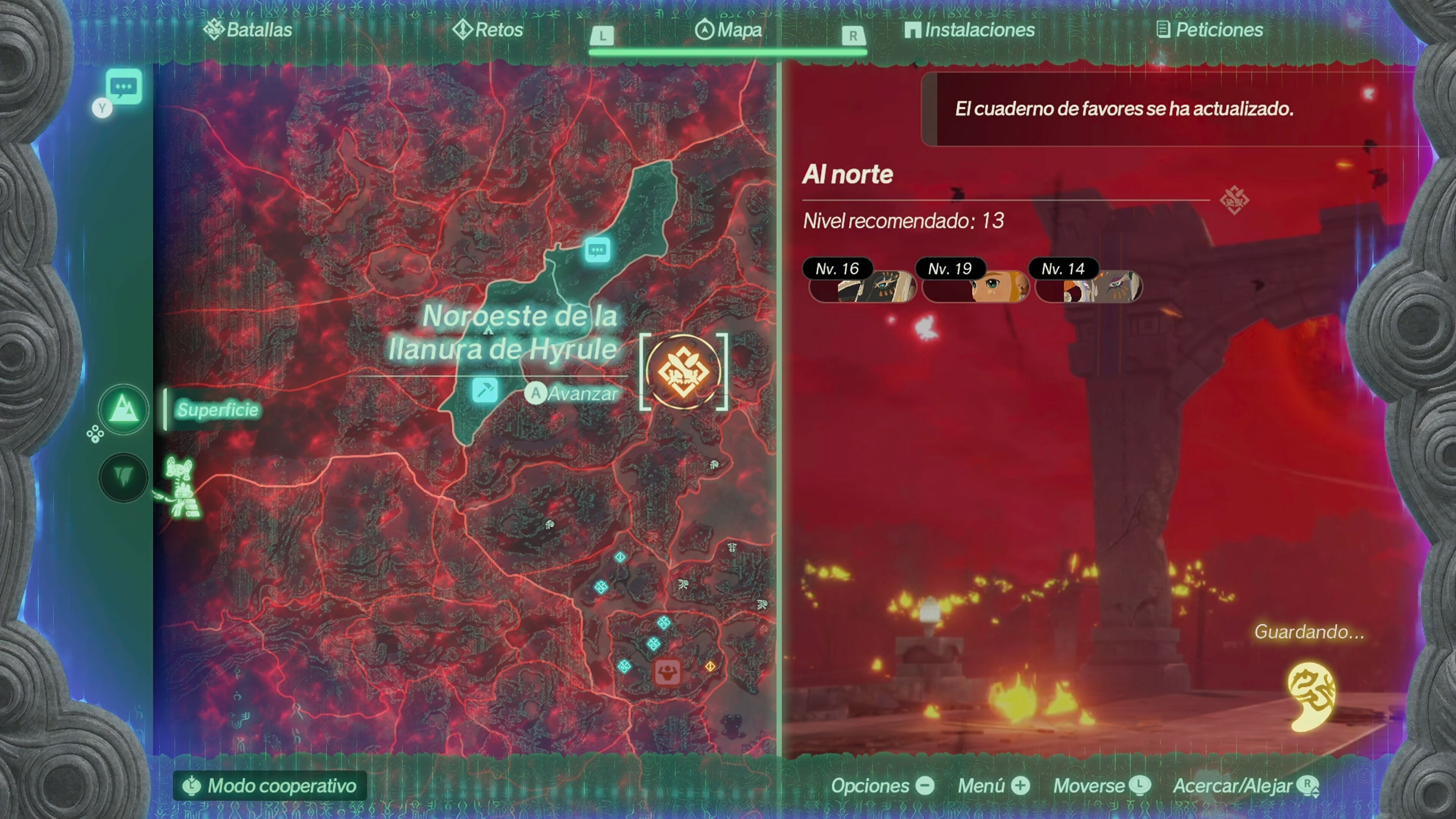 En el anterior juego se usó el mapa de Breath of the Wild para articular su estructura. Aparecían todas las batallas mediante iconos, y teníamos libertad para escoger entre varias misiones y peticiones. Algunas avanzaban en la historia, mientras que otras funcionaban como misiones secundarias para fortalecer a nuestros protagonistas. En este videojuego el esquema es exactamente igual, y nos parece un acierto que se haya mantenido, porque funciona fenomenal.