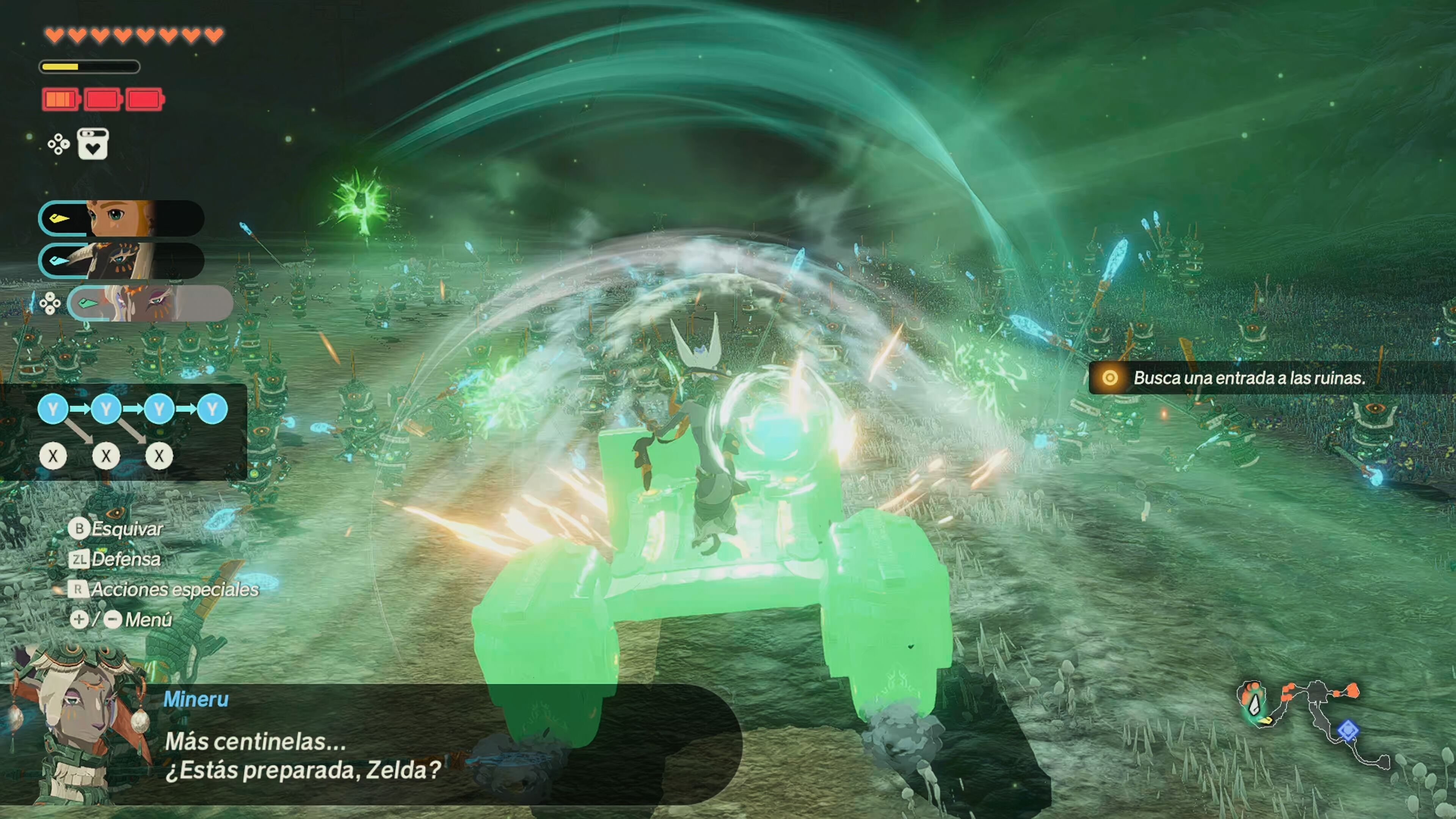 Aquí también se notan las ganas de representar fielmente lo que fue Tears of the Kingdom, que como sabéis se desarrolla en tierra, cielo y subsuelo. Esto añade un punto más de profundidad al esquema jugable, con muchísimas misiones. La mayor parte de ellas, eso sí, se basan en arrasar con los puestos enemigos y enfrentarnos a algún jefe al final del trayecto, a veces con restricción de tiempo. Hay contadas ocasiones en que se nos plantea algo más, como activar unos interruptores o encontrar caminos ocultos hasta llegar a nuestro destino. Estos planteamientos más originales nos han gustado, pero son la excepción, no la norma, y nos habría gustado verlos con mayor frecuencia.