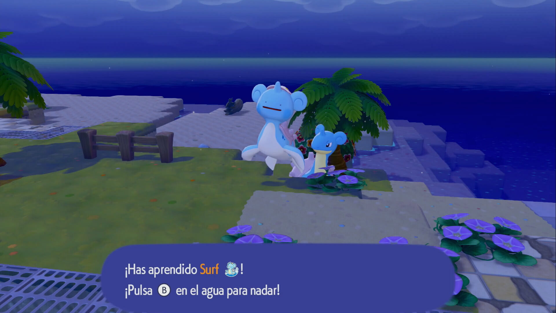 Ditto es capaz de aprender las habilidades de algunos de esos Pokémon. Se trata de poderes útiles para toda la aventura: pistola agua para regar, follaje para generar hierbas, golpe roca para romper los bloques de los que está formado el mundo, arar y otros tantos. Algunos incluso nos enseñan a transformarnos en ellos, como Lapras para hacer surf y Dragonite para planear. Durante toda la aventura estamos aprendiendo movimientos que se mezclan con el resto de mecánicas y van haciendo el juego más y más profundo.