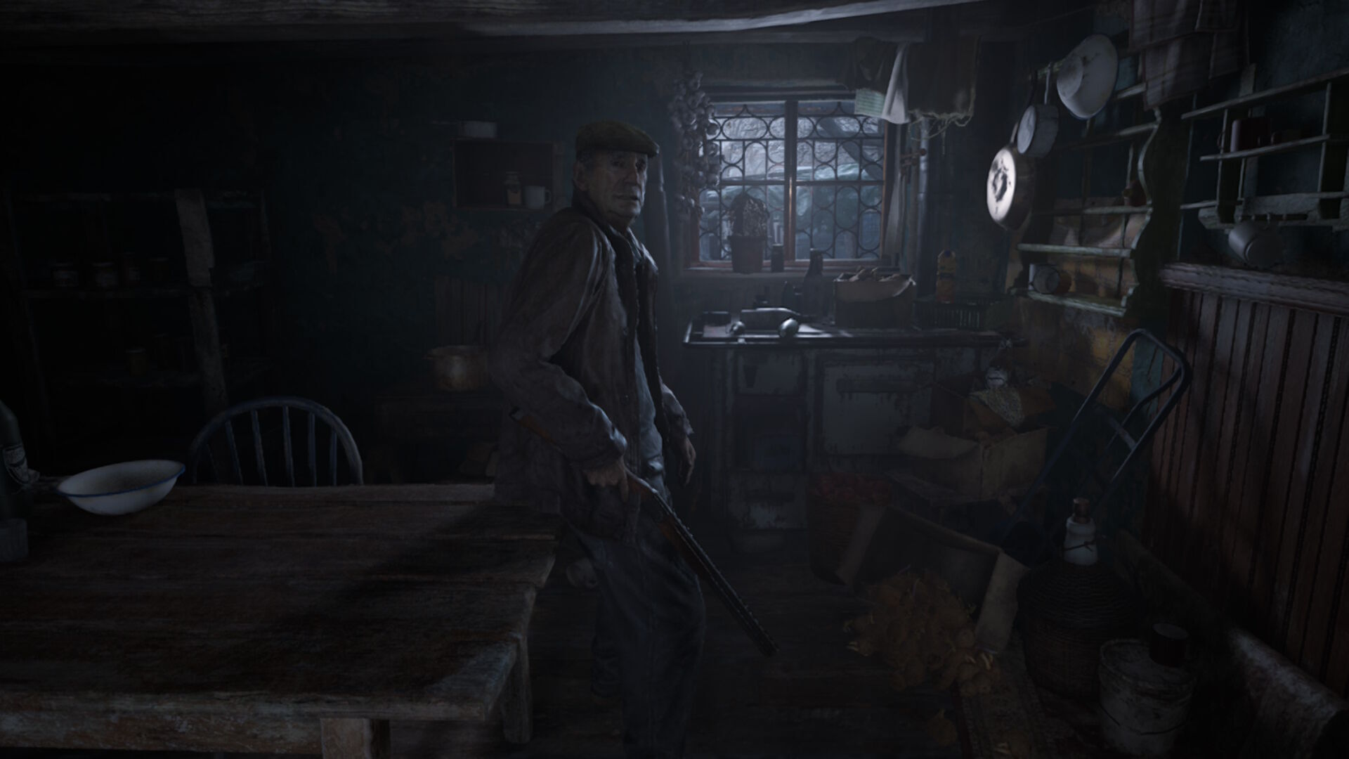 Aunque también existen los tirones, en modo televisor corre mejor que en portátil, aunque se aprecia menos nítido, el aliasing canta más y salen a relucir algunas texturas a baja resolución menos evidentes que en portátil. También nos hemos encontrado un bug extraño en la iluminación que solo sucede en un momento muy concreto, en la reunión del principio con otros aldeanos. En cuanto a los tiempos de carga, son un pelín más largos que en RE7, pero son tan solo unos segundos.