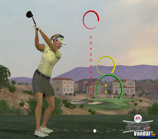 El control tiene varios niveles de dificultad que se traduce, en realidad, en cuántas variables están disponibles. El swing fácil permite dar un golpe directo, sin opciones de efecto de draw o fade; el medio nos deja aplicar un nivel normal de efecto y, finalmente, el avanzado, permite añadir draw y fade a los golpes. Hay que añadir, además, que podemos usar varios tipos de palos (hierros y wedges) y golpes en función de la lo que nos exija la ocasión. Así, por ejemplo, podremos dar fulls, punchs, pitchs, flops y chips además del putt. Como vemos, el sistema es tan completo como se podría esperar.