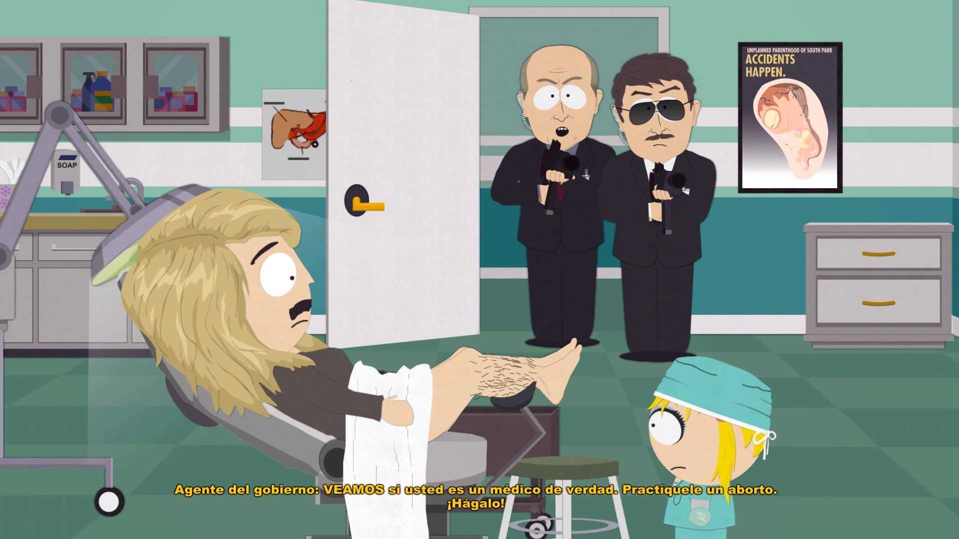 Y el sonido es igual de soberbio, con melodías muy simpáticas y acordes a lo que esperamos de South Park, recuperando algunos temas míticos que ya hemos escuchado en la serie –no podemos dar más pistas-, con los mismos sonidos en los cambios de escena o las vueltas de las pausas publicitarias, que aquí escuchamos por ejemplo al cargar partida, y con Trey Parker y Matt Stone doblando como siempre de manera genial y tronchante a casi todos los personajes. A esto le acompañan unos buenos subtítulos en español, que como punto negativo no aparecen a la hora de escuchar ciertos programas de televisión, la radio, o la pantalla de cine, algo con lo que deberían haber tenido más cuidado.