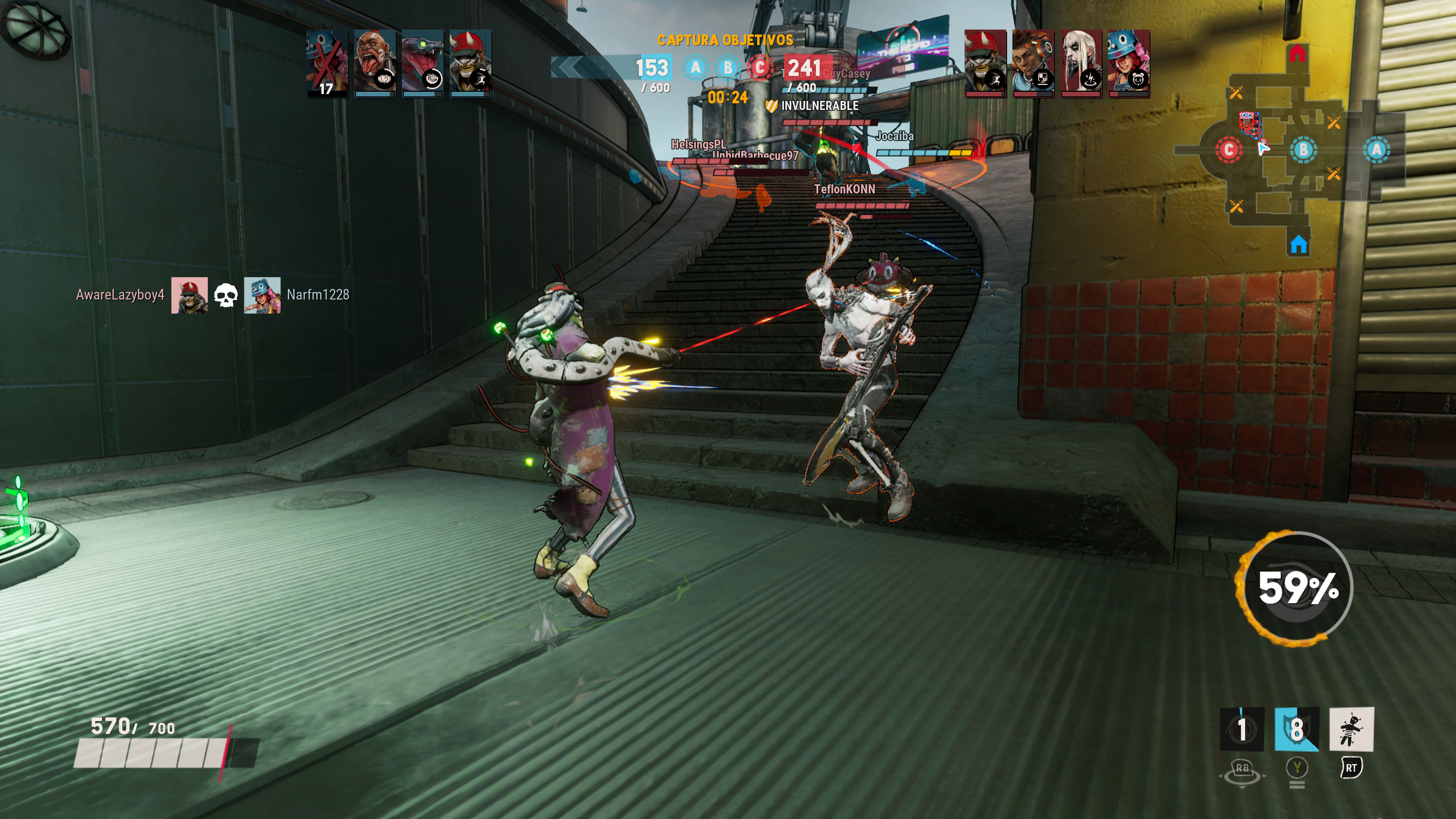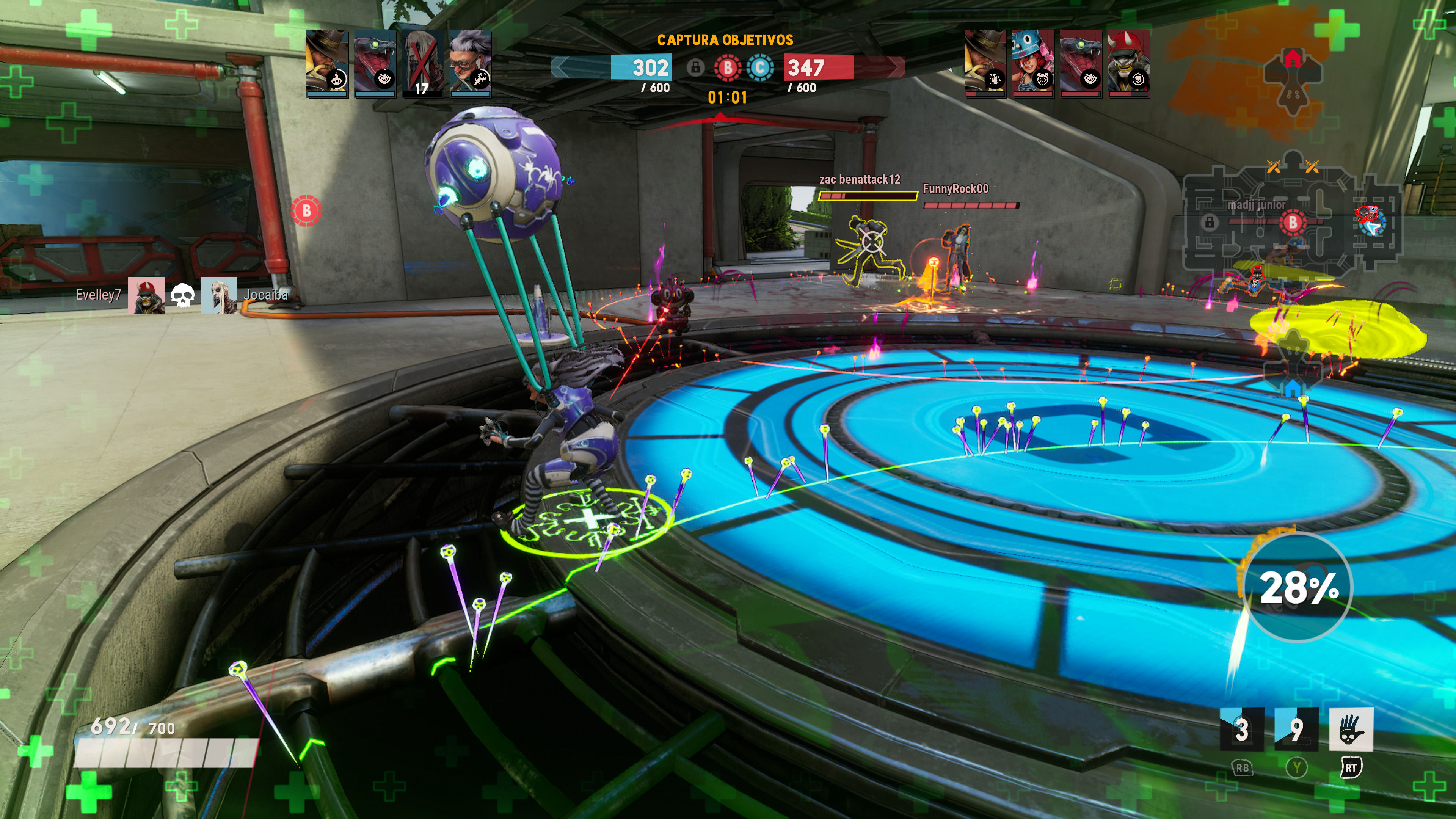 Bleeding Edge, en lo técnico y audiovisual, nos parece un juego con ciertos altibajos. Por una parte, la mayoría de personajes nos encantan, haciendo gala del siempre buen hacer artístico de Ninja Theory; pero por otra parte, los mapas nos parecen algo más genéricos. En Xbox One X, el juego se mueve bastante bien, a 60 imágenes por segundo, pero hemos visto muchos jugadores teletransportándose momentáneamente durante las batallas, algo bastante molesto en un título así, y más cuando sólo participan ocho usuarios, por lo que sospechamos que el código de red necesita más trabajo.