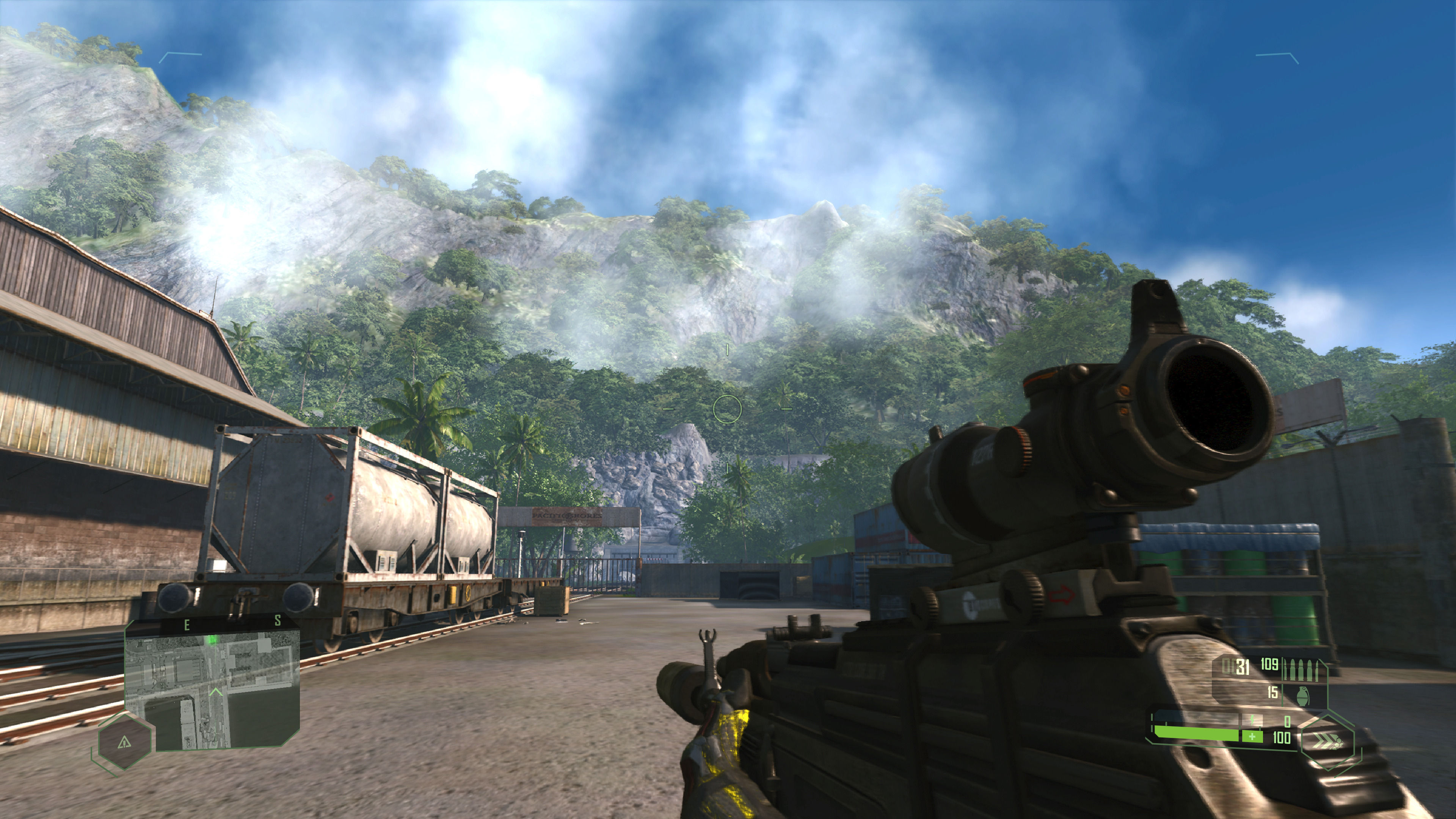 Pero antes de entrar en lo técnico vamos a hablar del juego en sí. Lamentablemente, Crysis no ha envejecido bien. La trama del juego nos pone en la piel de Nomad, un agente de la CIA que, al igual que sus compañeros de escuadra, tiene un traje futurista que lo convierte en poco menos que un superhéroe. Su equipo aterriza en una isla de Corea donde han descubierto una supuesta fuente de energía valiosísima en una excavación. La primera parte de la historia nos lleva por un mundo semiabierto, una selva que recorrer a pie, en todoterreno, en lancha y con otros vehículos mientras acabamos con todos los coreanos que se mueven. La segunda parte, de la que no queremos contar demasiado más allá de que pasa del militarismo a la ciencia ficción, es mucho más lineal, con menos opciones jugables y por tanto menos interesante.
