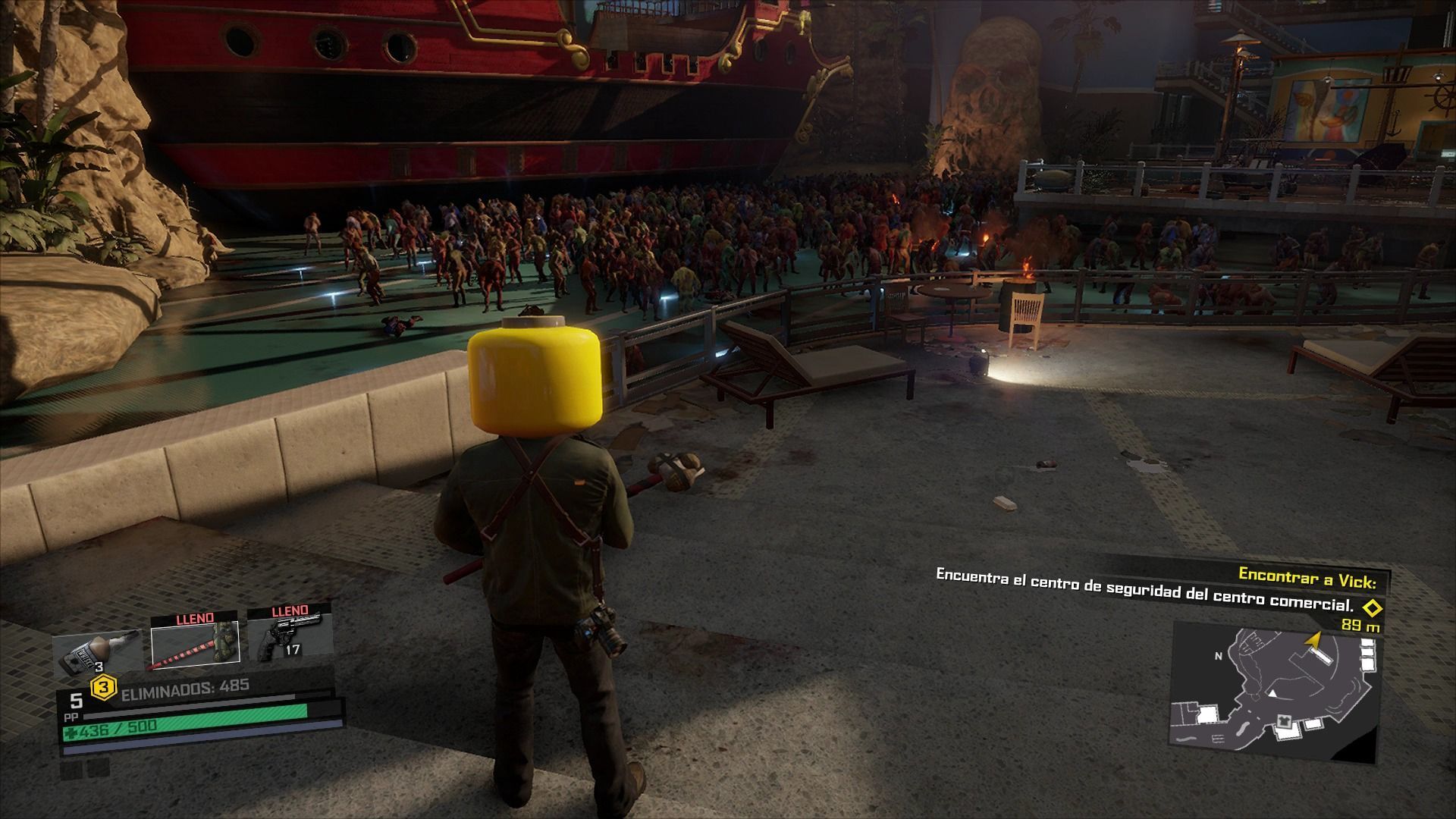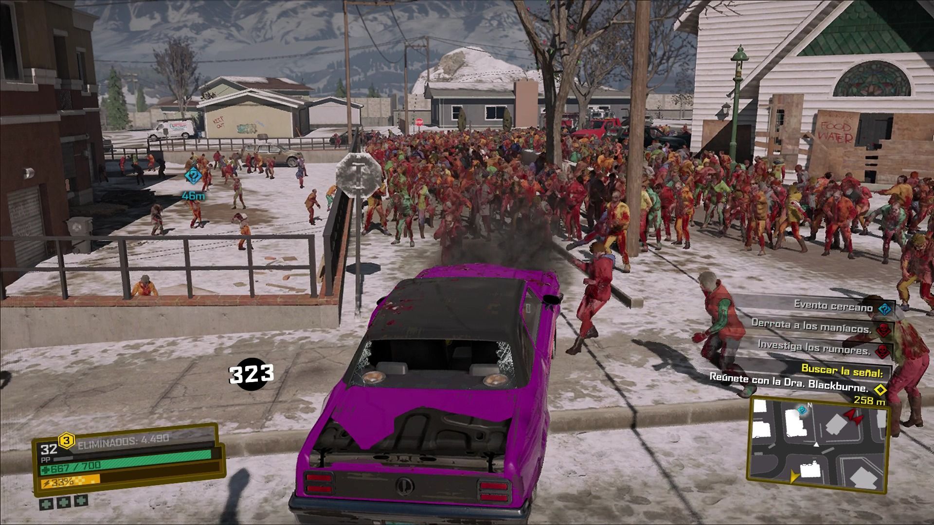 En cuanto a las misiones secundarias, unas de las más interesantes son las liberaciones de los búnkeres. Estos emplazamientos infectados de zombis estarán repartidos por toda la ciudad y nos permitirán acceder de forma rápida al centro comercial. En los búnkeres encontraremos vendedores de comida, armas, vehículos y ropa, ofreciendo opciones diferentes cada uno de ellos. Para poder adquirir dichos productos necesitaremos dinero, que iremos obteniendo al cumplir misiones y matar zombis, y un nivel determinado en cada bunker, algo que conseguiremos al salvar a personas en apuros.