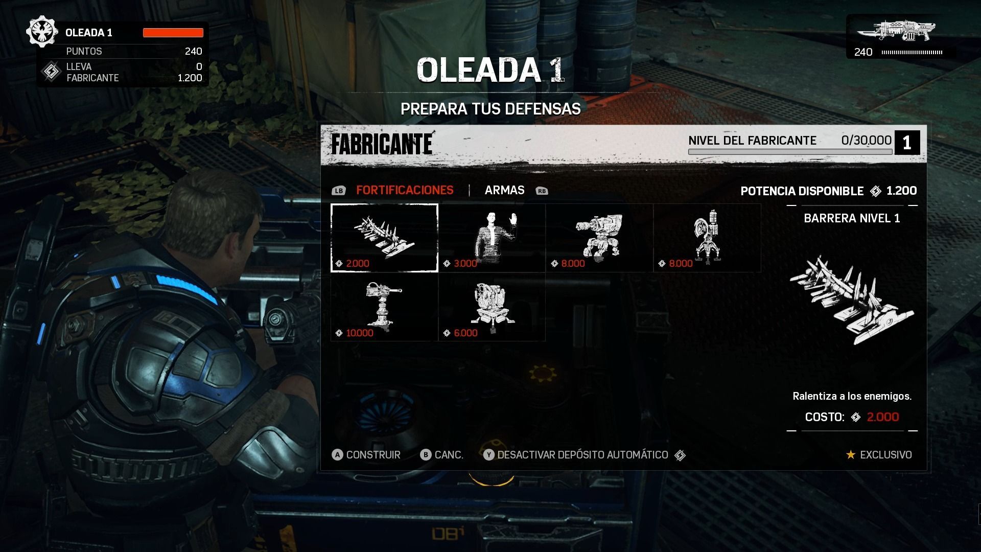 Una vez dentro de la partida, el modo Horda incluye un total de 10 mapas, todos ellos bien diseñados y con una configuración simétrica. Antes de la batalla tendremos que elegir la dificultad de la IA con el objetivo de resistir 50 oleadas con hasta 5 jugadores. Al comenzar, veremos que se ha introducido la figura del Fabricante. Está máquina, que podremos colocar en el punto que queramos al comienzo de la partida, fabricará todo tipo de armamento y protecciones defensivas gracias a la Energía. Esta moneda de comercio, que iremos consiguiendo a medida que eliminemos enemigos y superemos rondas, será fundamental para poder obtener los mejores recursos.