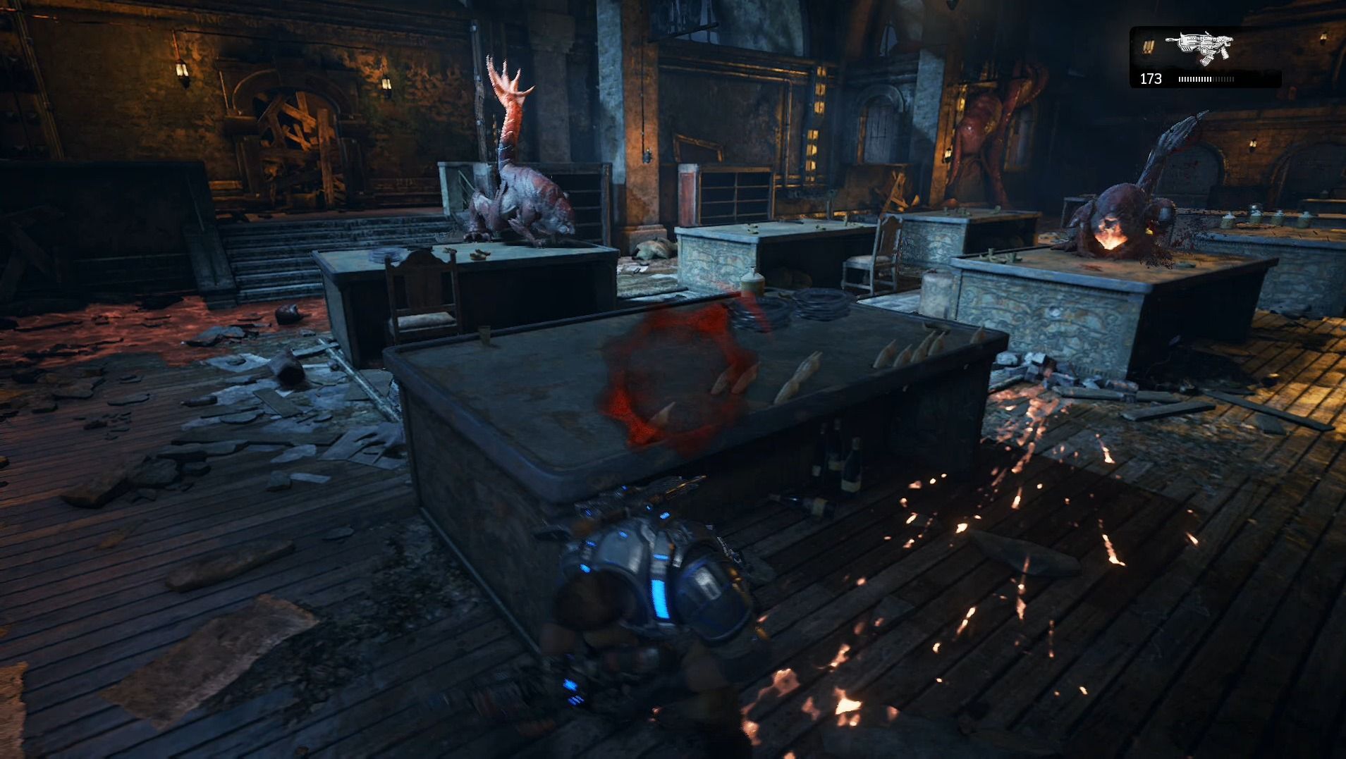 Gears of War 4 también incorpora en su parte final una serie de enemigos cada vez más grandes y temibles que exigen de mecánicas más complejas para destruirlos, teniendo que colaborar con los compañeros y usar el entorno para acabar con ellos. Sin duda, The Coalition ha hecho un trabajo sensacional creando este "nuevo" universo de criaturas, ya no solo por la obvia variedad jugable que aportan, sino también por la coherencia visual que tienen con el legado de la franquicia.