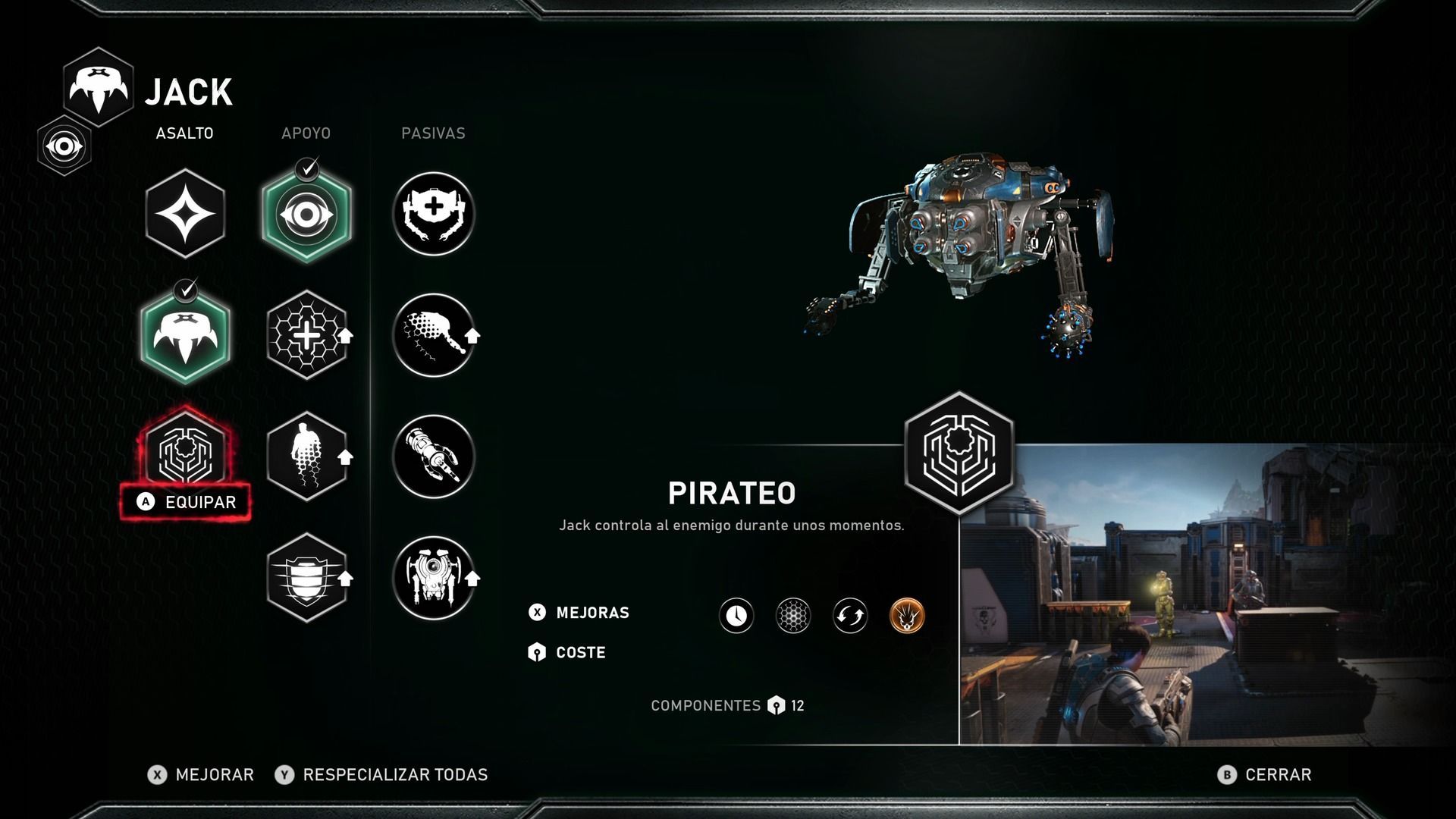 De esta manera, Jack enriquece la acción y añade un nuevo elemento estratégico en Gears 5, con sus distintas habilidades que tenemos que saber utilizar en los momentos más apropiados de cada combate, añadiendo también un sistema de progresión en el que tenemos que decidir en qué habilidades o características gastamos los componentes.