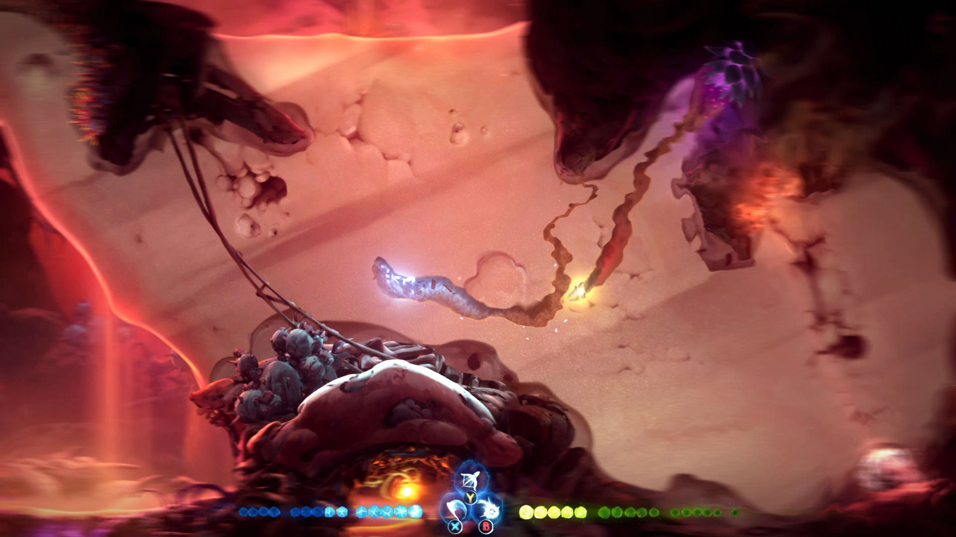 Intentando recuperarnos del "stendhalazo" de los primeros minutos, lo primero que notaremos es que Ori se controla incluso mejor que en el primer juego, algo que parecía difícil, y es de esos plataformas en los que el control es tan delicioso que el simple hecho de corretear y saltar por los escenarios resulta muy divertido y satisfactorio. A un ritmo endiablado no tardaremos en conseguir las primeras habilidades y mejoras que van ampliando la fórmula jugable, como el doble salto, y muy pronto también descubriremos la que posiblemente sea su mayor novedad: el mejorado sistema de combate.