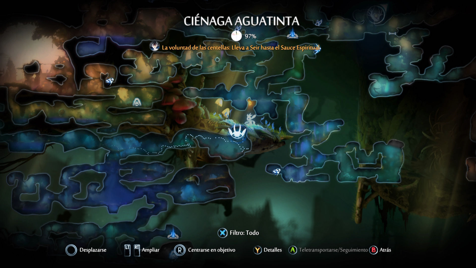 La etiqueta 'metroidvania' se ha convertido en un enorme cajón desastre en el que cabe todo en los últimos años, y no hay una definición exacta y canónica de lo que debe ser un juego de este estilo, cada uno tiene su opinión. Sí, en Ori and the Will of the Wisps hay un enorme mapa lleno de secretos y coleccionables que según vamos obteniendo nos acercan al 100%, y vamos consiguiendo habilidades que nos permiten acceder a zonas antes inaccesibles, pero realmente todo esto es algo secundario, no es necesario hacer backtracking para pasarte la aventura, y si te centras en la historia principal se puede disfrutar como un plataformas prácticamente lineal, sabiendo a dónde tienes que ir en todo momento y pisando siempre nuevos escenarios, sin necesidad de volver sobre tus pasos.