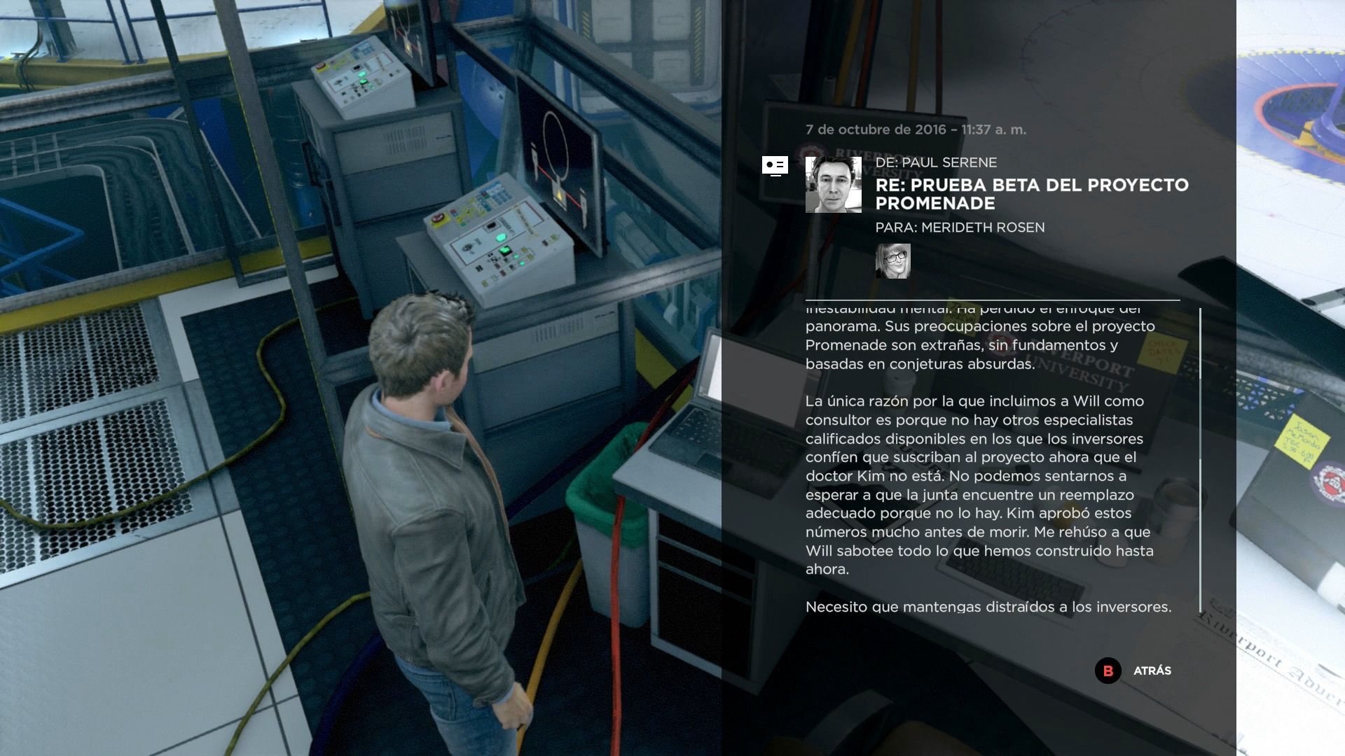 Y cuando hablamos de historia no nos referimos solo a diálogos o escenas cinemáticas, que no son tantas, sino sobre todo a una ingente cantidad de objetos como emails y todo tipo de textos que encontramos en los escenarios y que te puedes tirar minutos leyendo dada su extensión, y que en algunos casos desvelan detalles importantísimos de la trama y los personajes, por lo que si te quieres sumergir en la narrativa, son de obligada lectura. Estos entorpecen demasiado el ritmo del juego, y es curioso que un estudio con la experiencia de Remedy no se haya dado cuenta de este error, o no les haya importado.