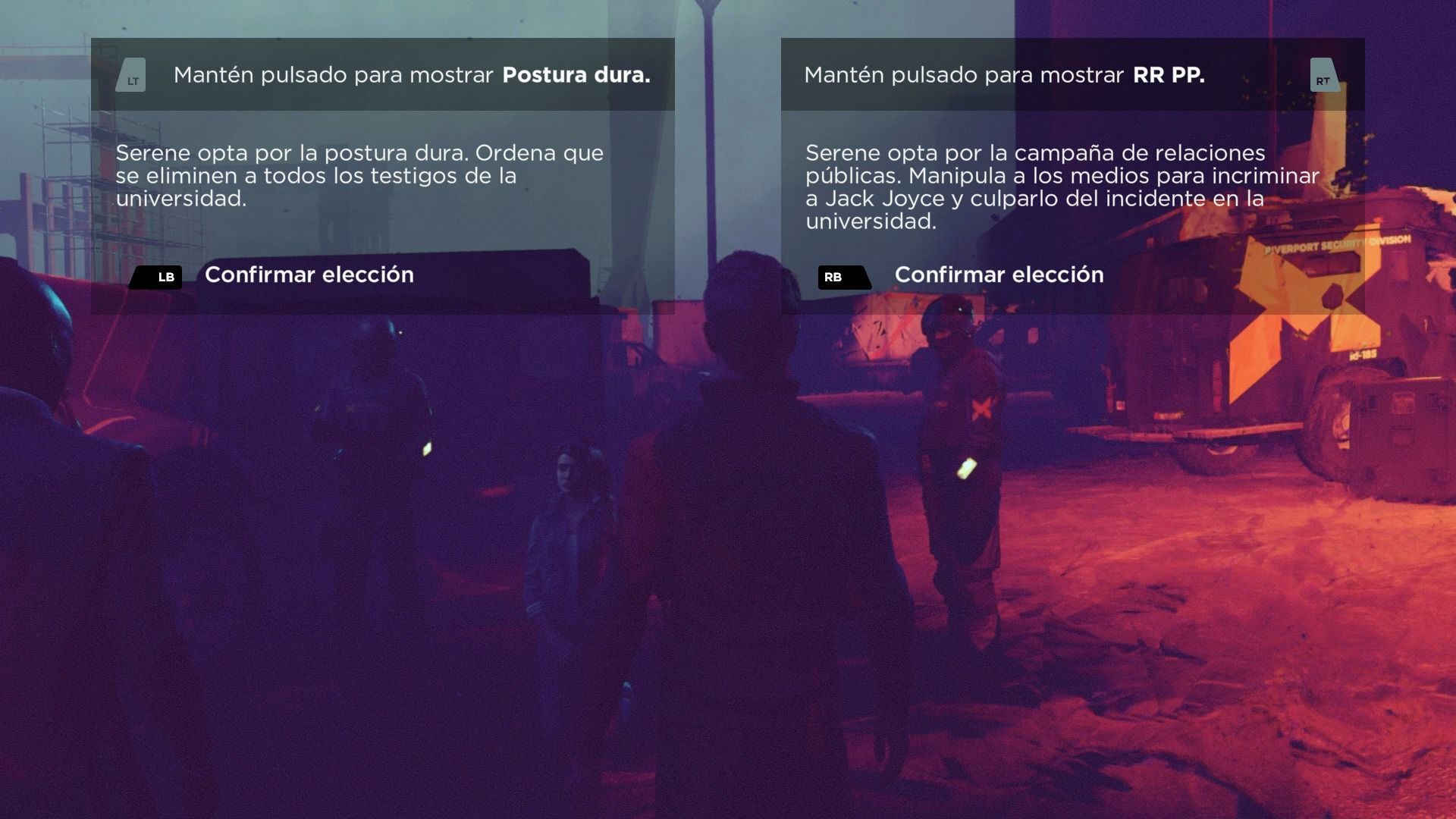 Las consecuencias de nuestras decisiones también se reflejan en el juego, pero de manera anecdótica, por ejemplo cambiando algunos de los documentos que encontramos en los escenarios, o ciertos detalles del entorno. Sí hay una decisión muy importante en el primer Impacto de nudo, y en el último, pero en cualquier caso no esperéis visitar nuevas localizaciones o vivir diferentes escenas de acción, por lo que realmente la rejugabilidad es relativa, y no vemos motivos de peso para jugar la aventura varias veces.