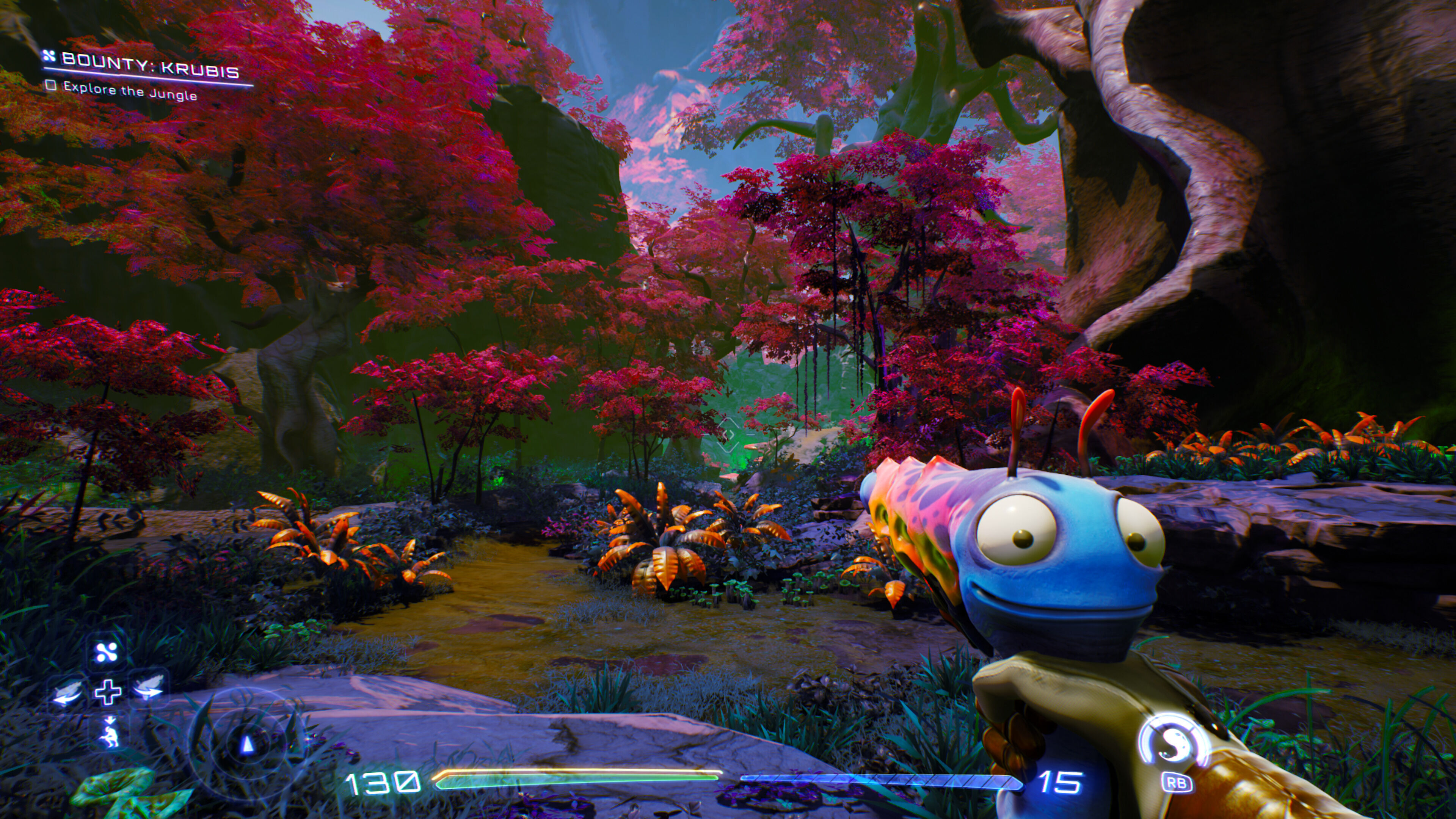 Lo que sí que nos ha gustado mucho es su dirección de arte y su apartado gráfico, ofreciéndonos un universo con muchísima personalidad en el extravagante diseño de sus personajes y con unos entornos vibrantes y coloridos que nos dejan estampas sorprendentemente bellas. No es que sea un portento en lo técnico como evidencian ciertas animaciones (las de las armas son fantásticas, eso sí) y efectos, pero sí que cumple con solidez y acaba resultando un título que entra fácilmente por los ojos.