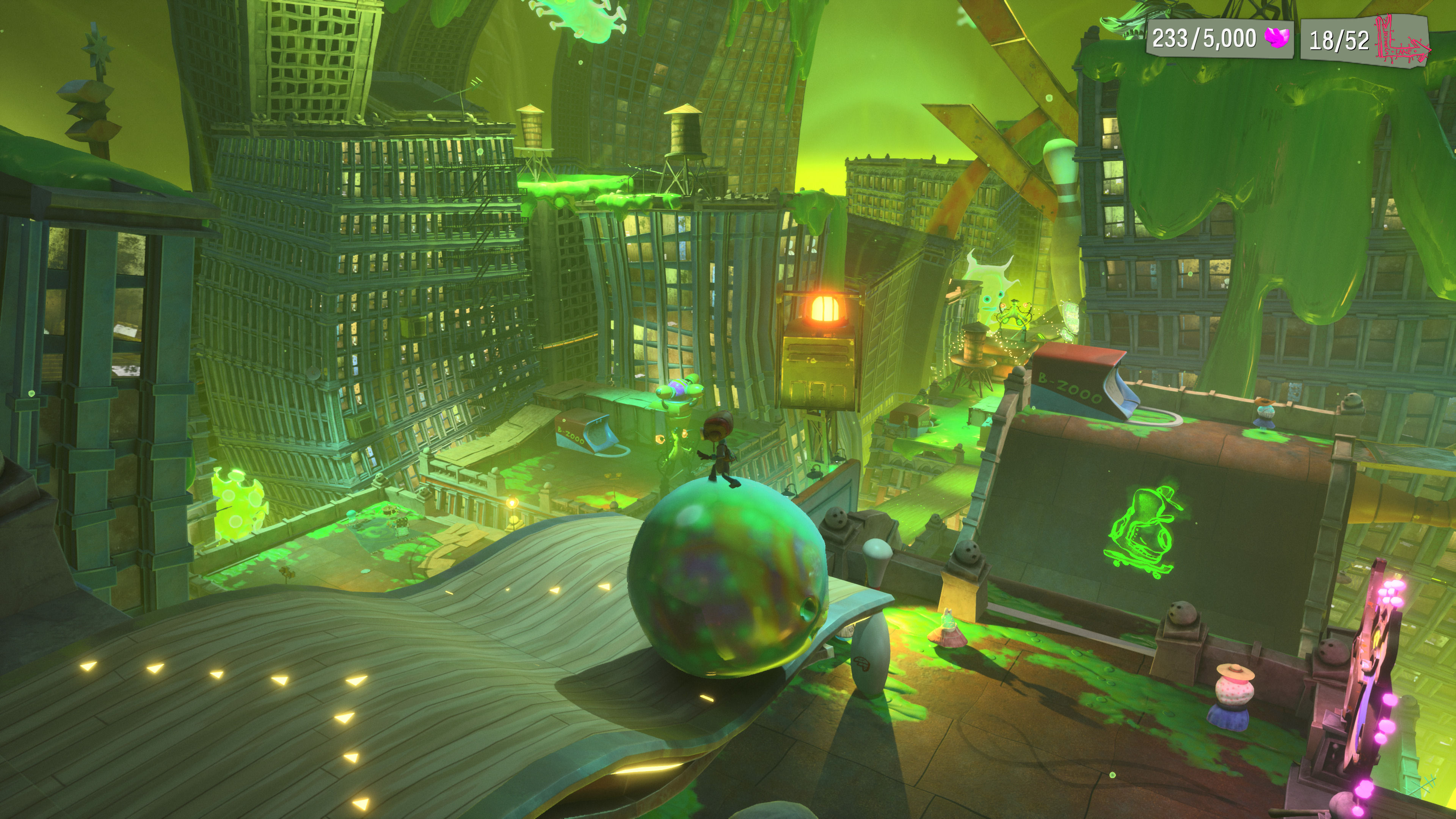 Si analizamos sus elementos jugables por separado, el plataformeo, los combates, la exploración y los puzles, hay que admitir que ninguno destaca especialmente, funcionan correctamente pero no esperéis complejas y desafiantes secciones de plataformas, ni enemigos con patrones de ataque muy elaborados, es todo muy sencillo. Pero Psychonauts 2 es mucho más que la suma de sus partes, y la mezcla de su cuidada historia y personajes, su gran creatividad a la hora de crear situaciones y mundos, y su entretenida jugabilidad, hacen que sea una aventura divertidísima, que se disfruta muchísimo de principio a fin. Y generosa, puede durar entre 12 y 14 horas, y más si te pones en plan completista, por lo que si quieres exprimirlo es fácil que acabes jugando más de 20 horas.
