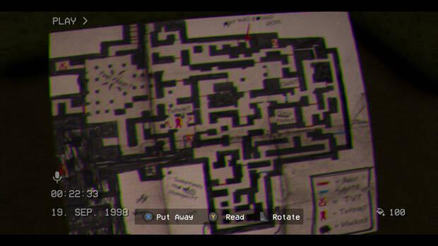 Para ayudarnos a navegar tamaño laberinto, podemos utilizar nuestras pisadas, que se van quedando marcadas en el suelo de manera temporal, o un spray para ir marcando por dónde pasamos, o dejar cualquier tipo de indicación que consideremos útil. Como nota, hay un mapa, relativamente útil, pero que sirve más para orientarse que para guiarse. Todo esto, por supuesto, junto a una criatura que nos persigue, a la que alertaremos si hacemos mucho ruido, sustos y cosas que vemos moverse de reojo, crea una atmósfera opresiva que sabe mantenernos en tensión, aunque nada que no hayamos visto antes.
