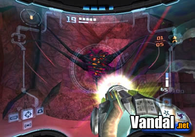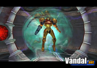 Por supuesto, no sólo de rayos vive la cazarrecompensas moderna, así que también es interesante adelantar algo sobre los visores que incorporará esta nueva aventura. Si en Metroid Prime contábamos con el visor térmico o el de rayos x, por ejemplo, la principal novedad en esta entrega será el visor de sonido. ¿Cómo? ¿Ver el sonido? Efectivamente: Retro Studios ha incluido un visor –del que todavía no sabemos demasiado, pues es uno de los grandes secretos del juego- que podemos definir de manera algo tosca como un sónar. Al fin y al cabo, el subtítulo del juego no es simple casualidad, y este nuevo visor va a representar novedades jugables muy interesantes, que desvelaremos en el próximo análisis del juego (siempre, por supuesto, sin reventaros ninguna sorpresa). Sin embargo, no todo iban a ser novedades: éste ha sido el título elegido para llevar a las 3D un movimiento clásico de Samus en todas sus aventuras bidimensionales: el screw attack, que permite a Samus saltar rebotando de pared en pared para alcanzar objetivos lejanos y destruir enemigos.