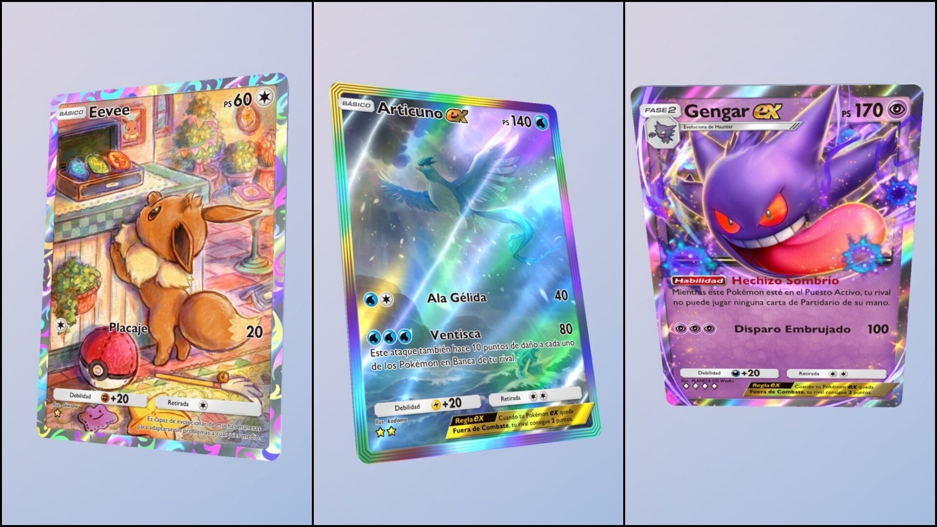 Precisamente en el arte de las cartas está el otro gran valor del juego. Simplemente que sean Pokémon ya las hace para parte del público más atractivas que las de otros JCC digitales, pero más allá de eso, su diseño es alucinante, tanto de las más sencillas o las que replican los dibujos de las primeras colecciones del JCC, como muchas otras que dan ganas de imprimirlas y colgarlas en la pared del salón. Entre las más de 220 cartas disponibles ahora mismo hay muchas de las criaturas más conocidas: no faltan las más reconocibles de la primera generación y algunas de las más populares de los videojuegos más recientes. Hay artes preciosos, decíamos, pero las cartas EX, con los monstruos de bolsillo saliéndose del marco en 3D, y las que tienen arte completo, son fantásticas.