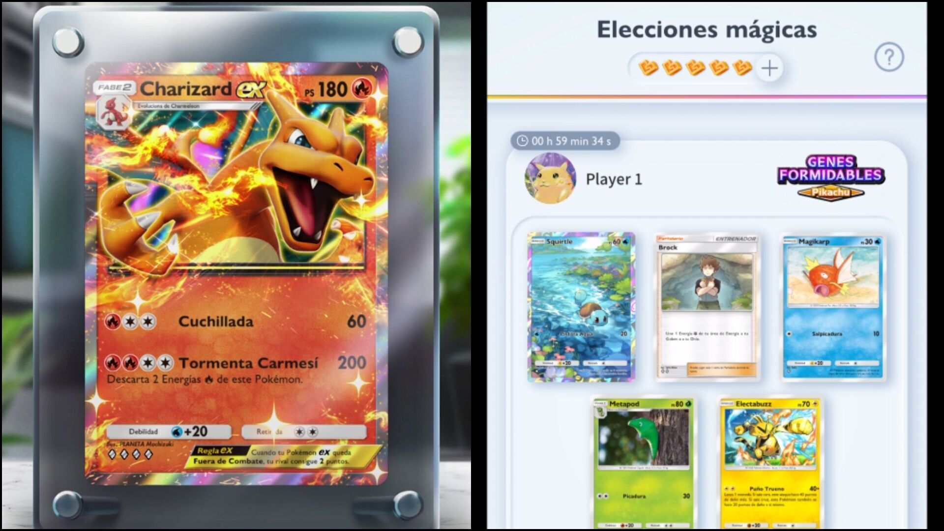 El primero es que, debido a que no hay muchas cartas disponibles ahora mismo, las estrategias disponibles son limitadas y hay algunos mazos claramente descompensados que llevan días circulando por la red. El segundo motivo tiene más enjundia y es más difícil de solucionar: como quiere ser un juego accesible y ágil, algo que sin duda consigue, los combates no adaptan literalmente las reglas del JCC de mesa, sino que lo simplifican. Entre otros ajustes, las barajas son más pequeñas, las habilidades de las cartas cambian y solo hay que acabar con tres Pokémon, en lugar de seis, para ganar la partida.