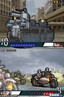 En cuanto a las unidades que movemos en el terreno, hasta la fecha siempre ha habido una evolución en cuanto a número y características. El ejemplo más claro lo tenemos en los diferentes tanques, puesto que han ido ganando en tamaño y capacidad de destrucción en cada entrega de la serie. En Advance Wars: Dark Conflict no será para menos, y ya se conocen algunas nuevas unidades que proporcionarán más valor al ya de por sí amplio abanico de posibilidades estratégicas que se ofrece. En cuanto a las unidades de tierra, llaman poderosamente la atención unas unidades de infantería que van en motocicleta, cuyas principales habilidades son las de cubrir un amplio rango de movilidad y la captura de bases, pero que sin embargo son débiles frente a unidades como tanques o helicópteros.