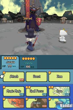 Algo que no nos ha gustado demasiado es la interfaz de juego, ya que nos parece un poco farragosa para algunas cosas. Por ejemplo, si queremos curar a uno de nuestros personajes fuera de las batallas con magia tendremos que, además de tener suficientes esferas (ya que las necesitaremos tanto dentro como fuera de los combates) ir al menú de objetos, seleccionar el libro de curar y realizar el hechizo. Es algo difícil de entender, sobre todo teniendo en cuenta de que tenemos un menú para las habilidades donde aparecen todos los hechizos que conoce el personaje, aunque en este menú sólo podemos seleccionar en que casilla de los comandos del combate colocamos cada hechizo y no usarlo.