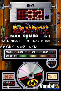 Las canciones disponibles abarcan estilos bastante diferentes, incluyendo J-Pop, temas de juegos de Nintendo, temas de series de televisión (sobre todo de animación japonesa), y, también, canciones más populares a nivel mundial como Smoke on the Water, entre otras. Suponemos que para el lanzamiento americano se cambiarán casi todas las canciones, por considerarlas excesivamente localistas (una práctica muy habitual en este género), así que de poco serviría comentarlas ahora mismo. Debemos decir, eso sí, que están bien resultas y presentan una calidad más que digna pese a las limitaciones naturales de la música midi; con todo, no creemos que el estilo de juego (el poder escoger el instrumento) se pudiese implementar satisfactoriamente con música normal (no al menos de manera satisfactoria). Esperamos que el juego llegue a Europa a lo largo de 2005, no sólo por su confirmado lanzamiento estadounidense, sino también porque, por suerte, el mercado ha ido abriéndose a estos productos y éstos, por tanto, han encontrado su hueco en un mercado cada vez más saturado de más de lo mismo.