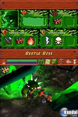 El juego nos invita a avanzar por los niveles venciendo a los enemigos y recogiendo objetos. En ocasiones se abrirán nuevos caminos que nos permitirán llegar más lejos o tendremos que retroceder para hablar con algún otro personaje que nos dará nueva información. Aunque no son demasiado grandes, los escenarios tienen bastantes elementos que formarán muchas alturas. Para no perderemos por los ellos, tendremos en la otra pantalla un mapa que nos indicarán donde se encuentran los enemigos, nuestros aliados, los objetos y nuestro próximo objetivo. Este mapa podrá ponerse en la pantalla inferior en cualquier momento, jugando en la de arriba normalmente (aunque tendremos que intercambiar las pantallas cuando deseemos realizar alguna acción con la táctil). Esto ocurrirá con cualquiera de las pantallas a las que accedamos a través del menú, como la de armas o la de ataques mágicos, algo que nos resultó muy curioso y que facilita la navegación por el menú, aunque habrá que ver si realmente aporta algo y compensa el tener que ir cambiando las pantallas entre sí.