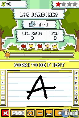 Hasta aquí la explicación aburrida. Cuando tienes una DS en tus manos con el cartucho del título la cosa cambia mucho. Al principio no sabes exactamente qué hacer, y te comportas de forma comedida. Pongamos el nivel en el que hay un gatito sobre el tejado de una casa y tienes que reunirlo con una niña que está al pie de la casa. Escribiendo "fuego" aparece una llama con la que podemos quemar la casa y apagarlo a tiempo, con lo que aparece la estrella. Con una catapulta para romper la casa también es posible, menos si se sitúa la niña en medio y le das con un proyectil que la mata. Misión fracasada.