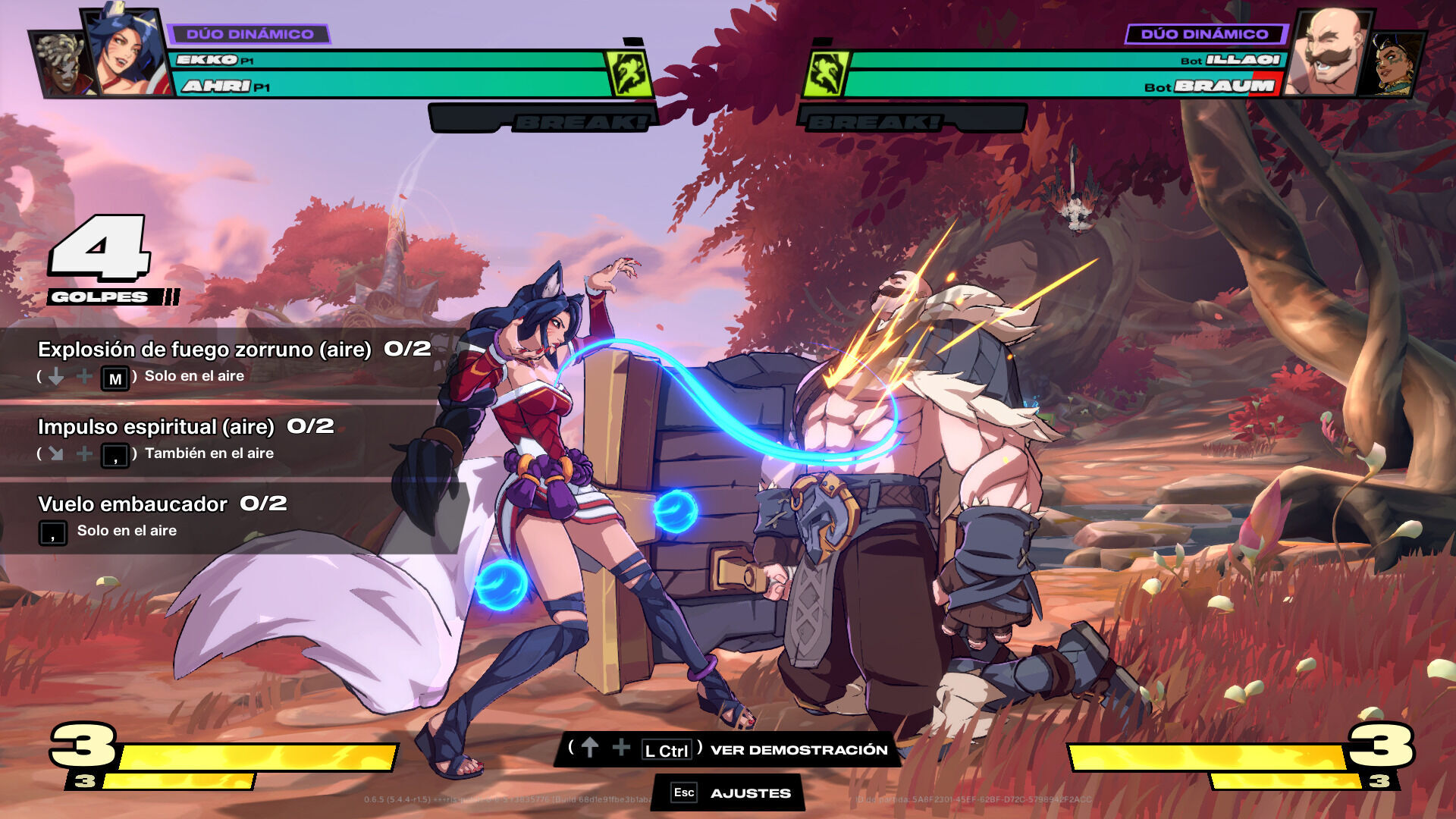 El primer contacto quizás sea un poco duro porque se aleja de la configuración habitual. Aquí tenemos ataque ligero, medio y fuerte, más dos especiales (S1 y S2). A diferencia de otros juegos que necesitan una pulsación de direcciones y algún ataque (piensa en el típico Hadoken de Street Fighter), en 2XKO estos movimientos especiales se activan con el botón, o una dirección acompañada del botón (abajo y S1, por ejemplo). Sin duda simplifica la ejecución y hace más fácil memorizar estos ataques únicos, pero habrá quien prefiera tener un control más clásico que, además, evite errores accidentales. S1 y S2 están configurados por defecto en los gatillos del mando.
