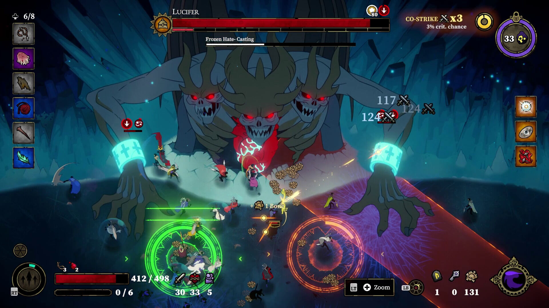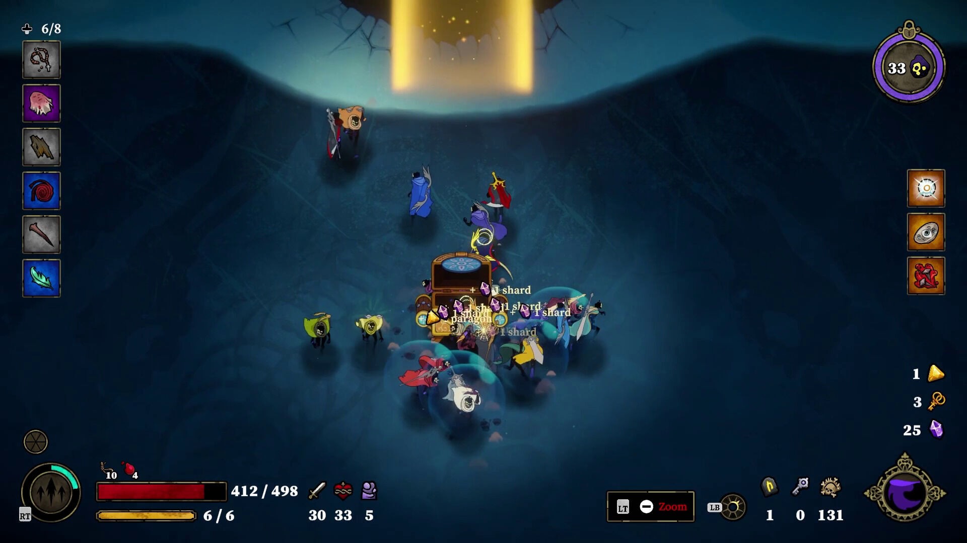 Pero no te preocupes por su aparente complejidad. El esquema funciona y es más sencillo de utilizar de lo que parece. El juego nace de la esencia MMO y sus raids, pero se fusiona con la acción de juegos como Hades. Es muy importante saber cuándo atacar y cuándo buscar una nueva posición desde la que flanquear a enemigos que siempre suelen superarnos en número. Ese equilibrio ataque-defensa explica una de las grandes particularidades de 33 Immortals en el plano jugable, que requiere de cierta habilidad a los mandos, especialmente cuando llegan los bosses.