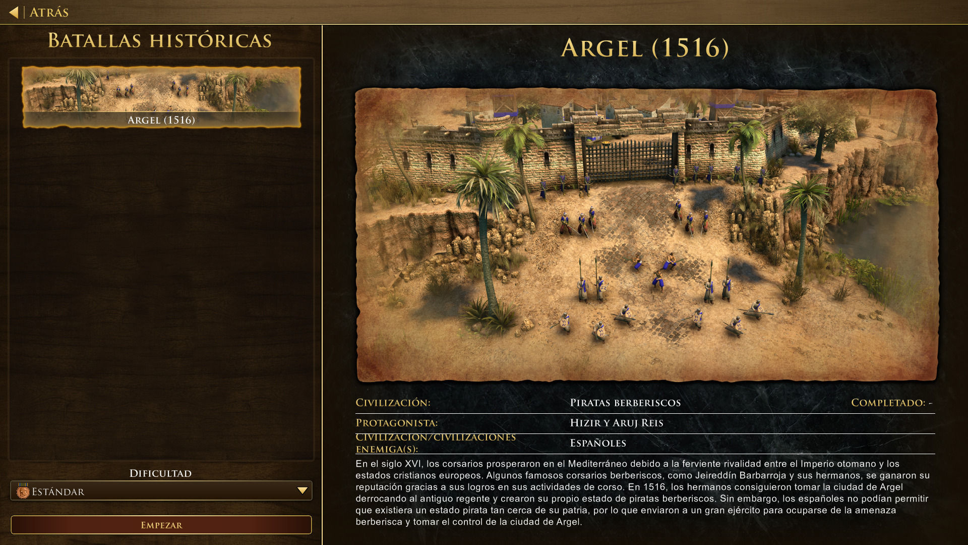 Dentro de las novedades las más importantes serán las Batallas Históricas que nos permiten, como su propio nombre indica, recrear batallas que han quedado escritas en los libros de historia. Nosotros en esta prueba pudimos jugar la Captura de Argel y la posterior Jornada de Argel en las que tenemos que enfrentarnos al ejército del rey Carlos I de España para defender nuestra recién conquistada ciudad y eliminar a las tropas enemigas del resto del mapa en una partida que nos ha resultado bastante divertida, con objetivos interesantes que nos han dado una buena muestra de lo que pueden ser estas Batallas Históricas que esperemos que sigan con este nivel en la versión final de esta edición.