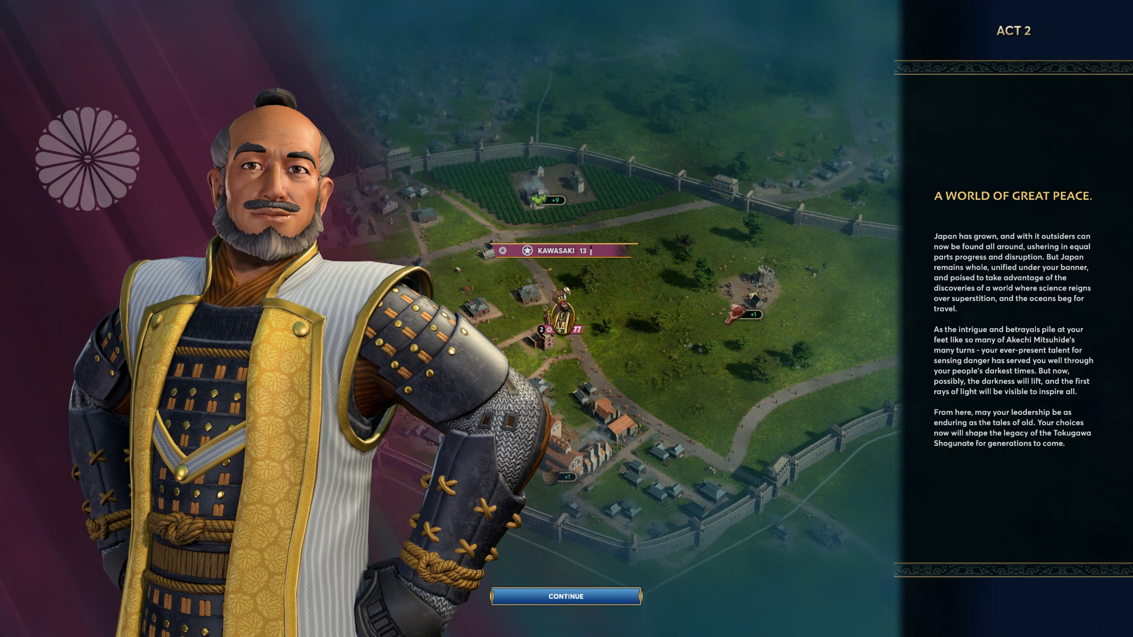 Dimos con un pequeño pueblo que estaba sufriendo una enfermedad que parecía ser contagiosa. La lideresa que elegimos para nuestra civilización permitía que esta tuviera buenos conocimientos científicos, así que decidimos ayudarlos a pesar del riesgo. Todo salió bien y el pueblo se unió a nuestra civilización. ¿Qué hubiera pasado si no les hubiéramos ayudado o si eligiéramos aislarlos? Más adelante, nuestro explorador dio con otra civilización, y teníamos varias maneras de proceder: desde declararles una guerra hasta pasar de ellos completamente, o bien intentar alcanzar una colaboración, para lo que necesitábamos ciertos bienes de producción de los que no disponíamos en esos momentos.