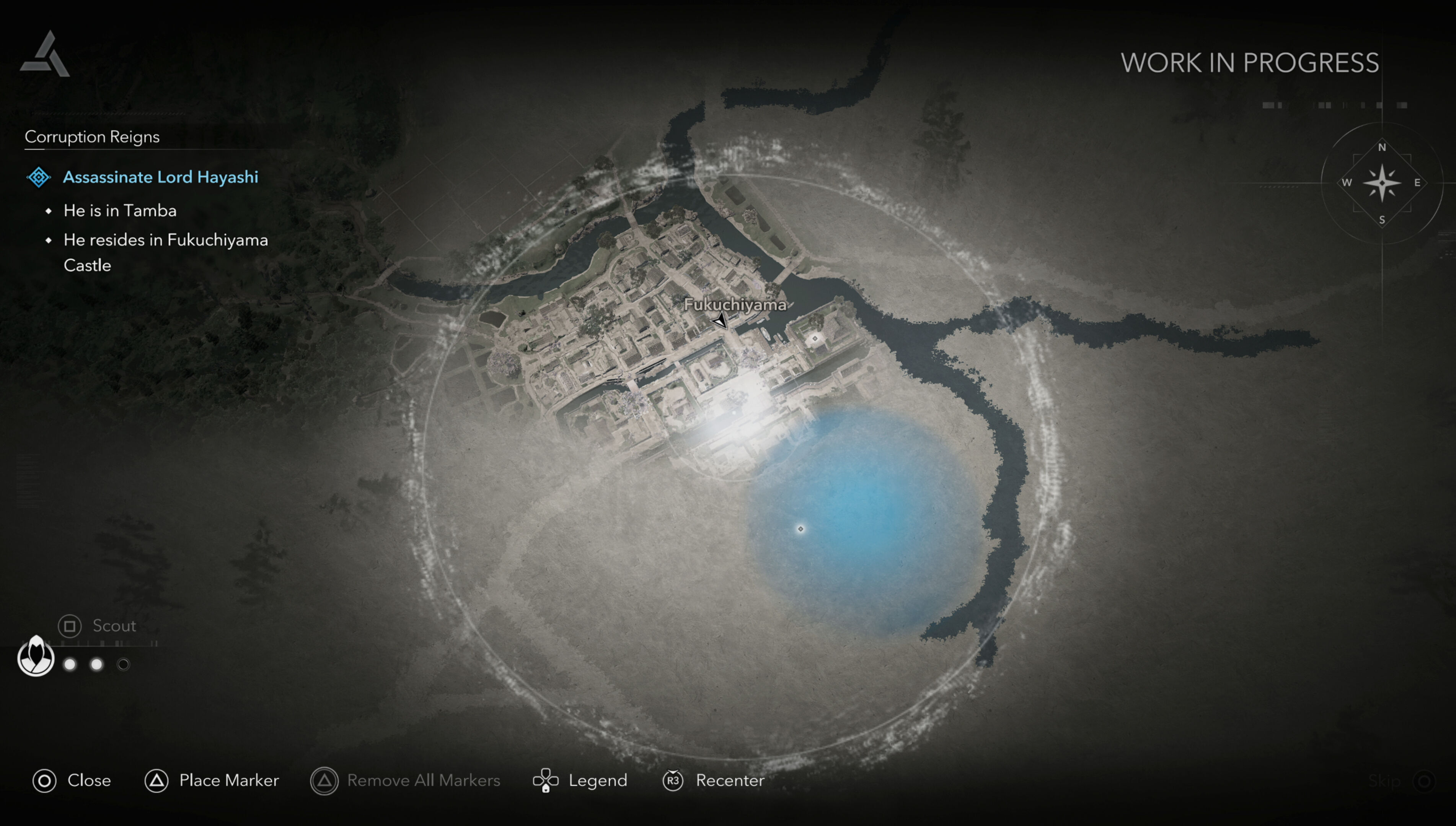 Pero Yasuke no es el único que puede ser agresivo. Esa misma misión también se podía jugar con Naoe durante el día, optando por la acción. Otra vuelta al diseño del nivel: mientras de fondo se comenzaba a preparar una tormenta procedimental (la que en la presentación pública aguaba el castillo), la shinobi esta vez utiliza su vista de águila para identificar a los enemigos a través de las paredes y atacarlos al pillarlos desprevenidos.
